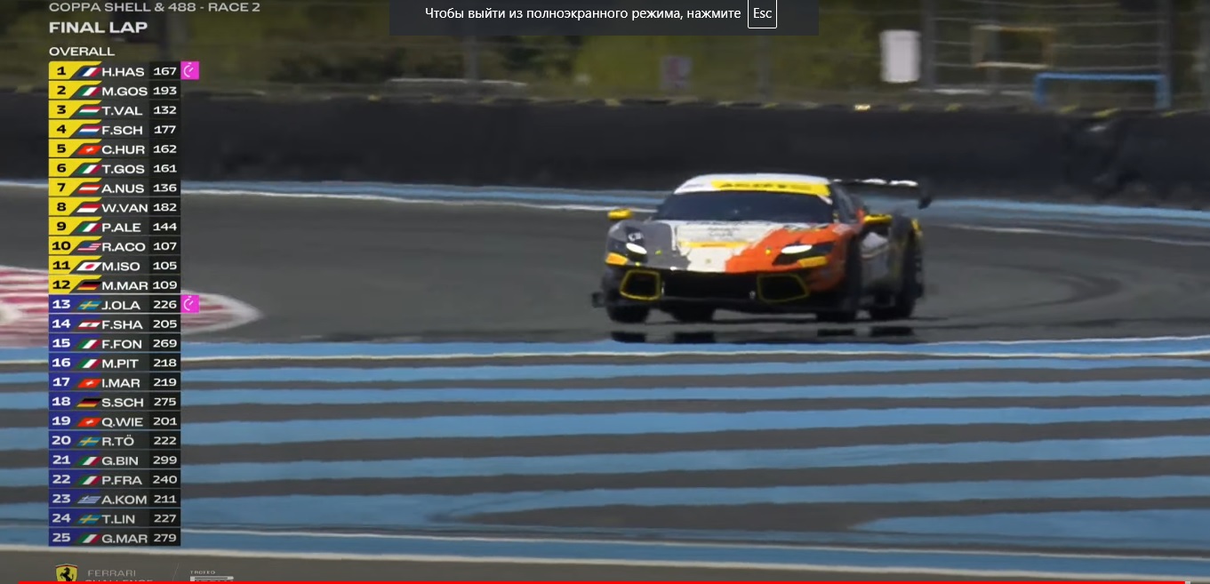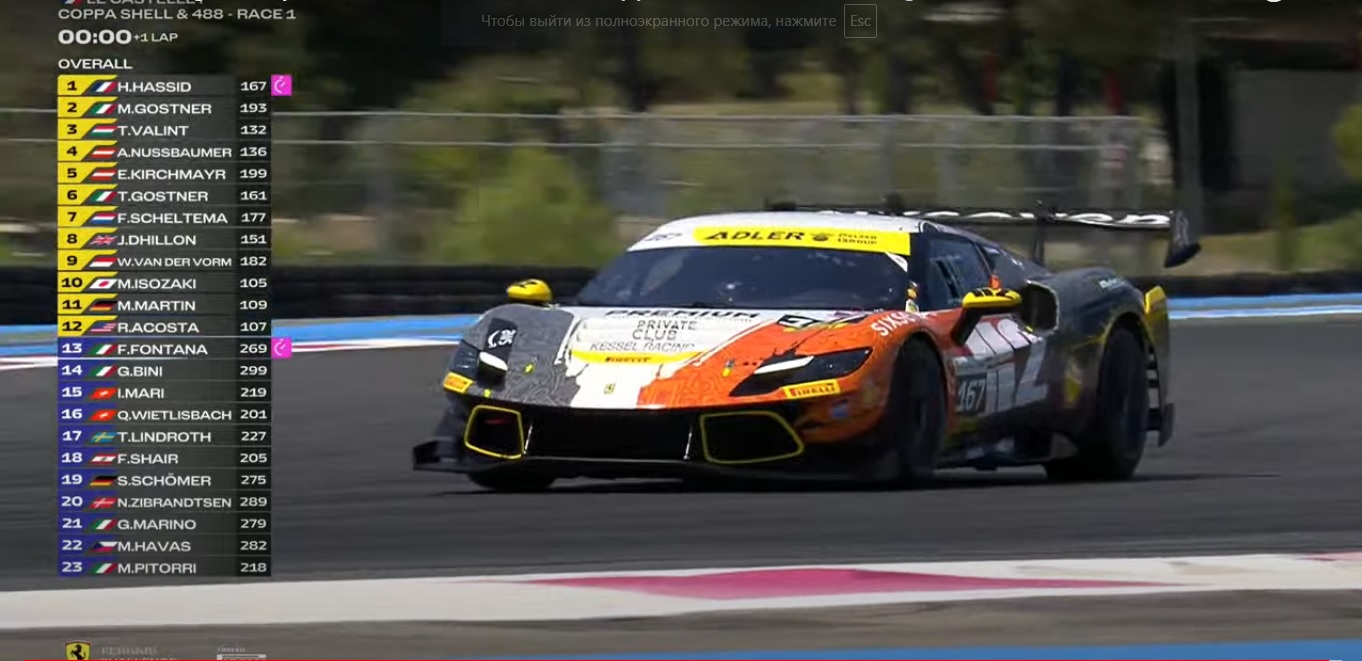 Ferrari Challenge Europe. Ле Кастелле. Франция. Прошел очередной этап моноклассов Coppa Shell (Ferrari 296 Challenge) и 488 Challenge Evo (Ferrari 488 Challenge Evo), Оба класса стартуют одновременно. Тут выступают не профессиональные пилоты, что не умаляет достоинств гонок. В первой гонке в классе Coppa Shell победил Генри Хассид,