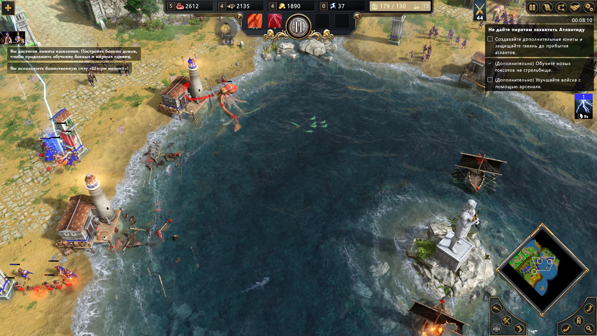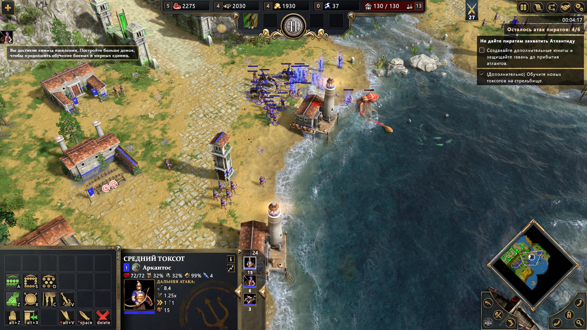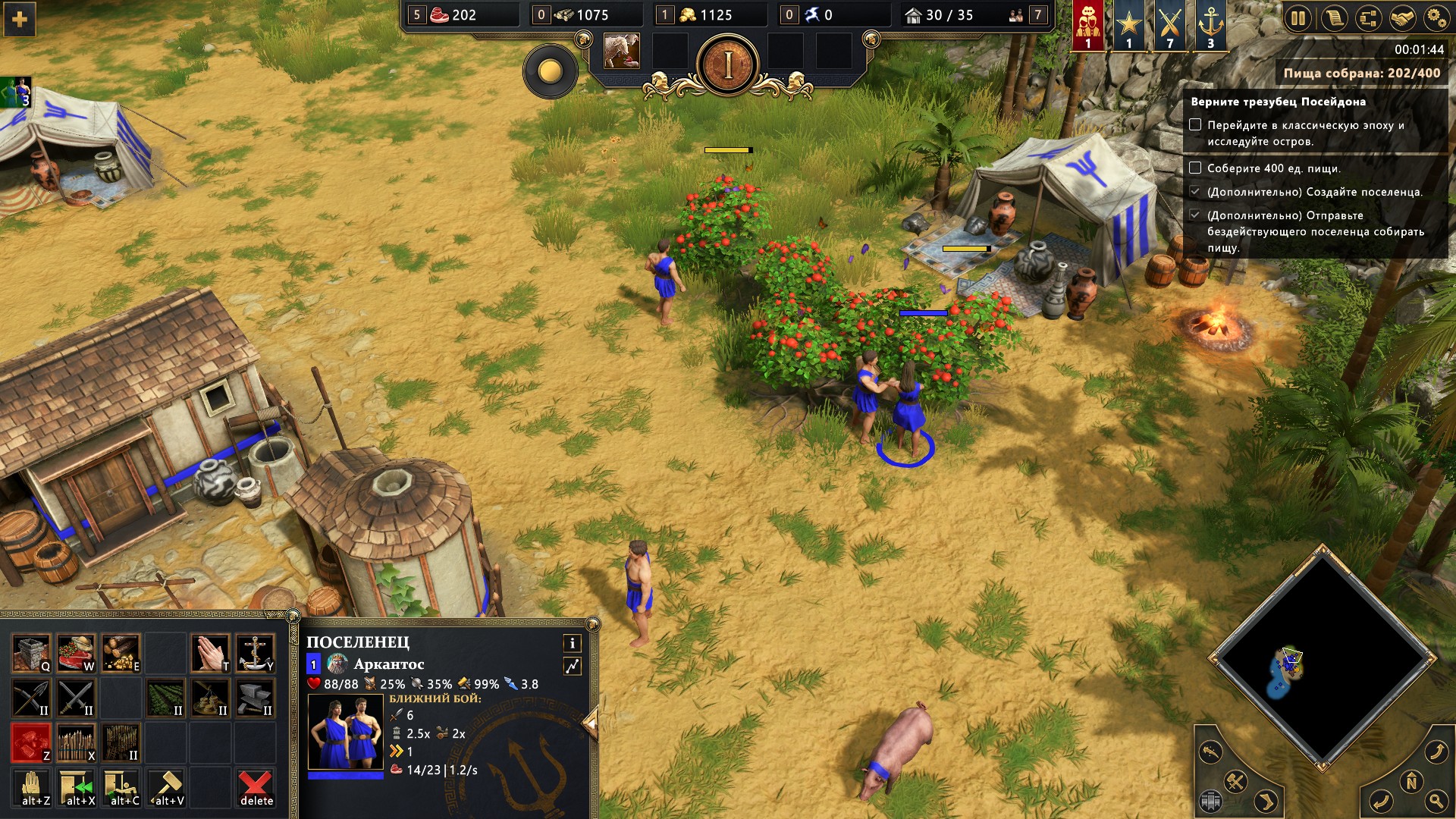 На все расходуются ресурсы. Но все поставленные задачи (основные и дополнительные) я выполнял. Далее, стоит озаботиться охраной своего поселения. Атак стоит ждать, как с суши, так и с моря.