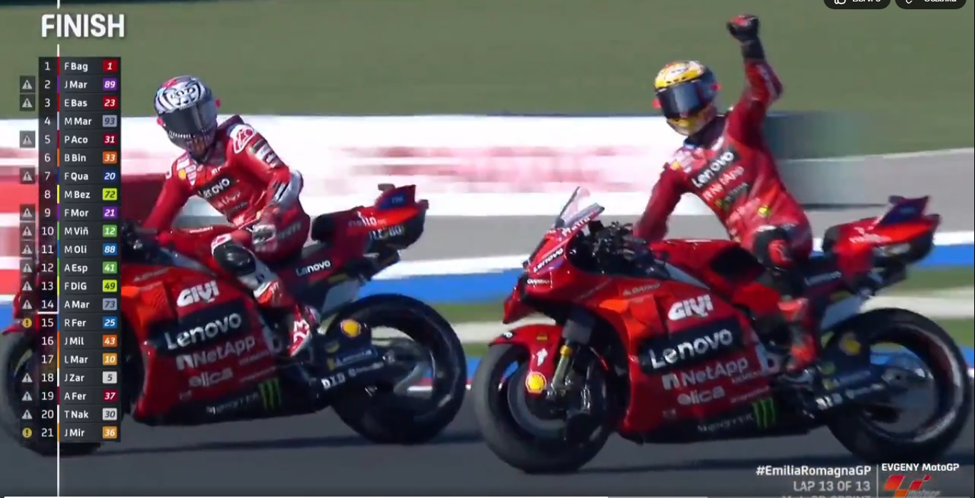 Подиум спринта -сплошь Ducati: Баньяйя, Мартин, Бастианини.