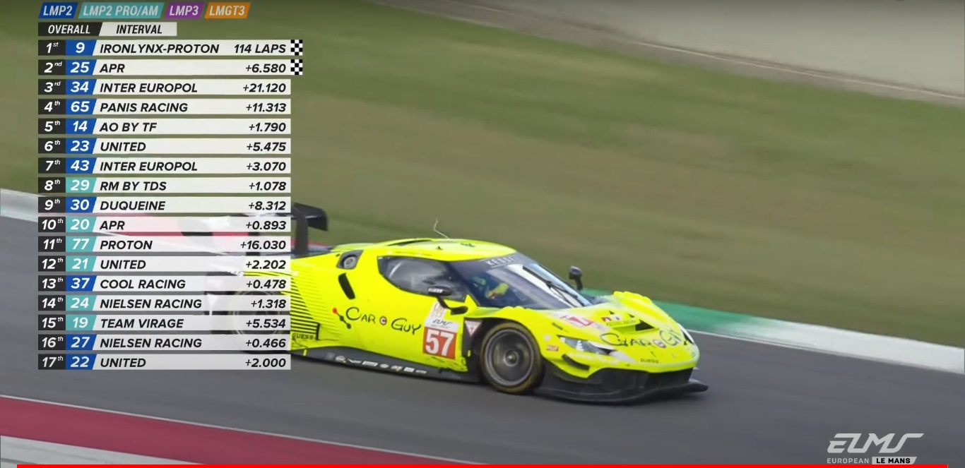 В классе LMP2 победил экипаж команды Iron Lynx - Proton (Рид, Капиетто, Кайроли).