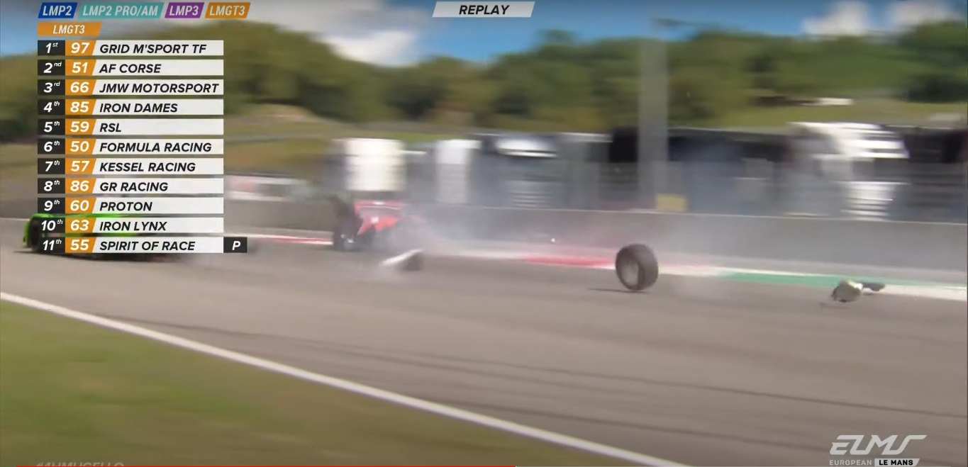 ELMS. 4-е часа Мюджелло. Италия. Трасса изобилует крутыми поворотами и не совсем подходит для таких гонок. После почти двух часов, гонка была остановлена красным флагом из-за аварии Porsche, который буквально "забрызгал" осколками кузова всю трассу.