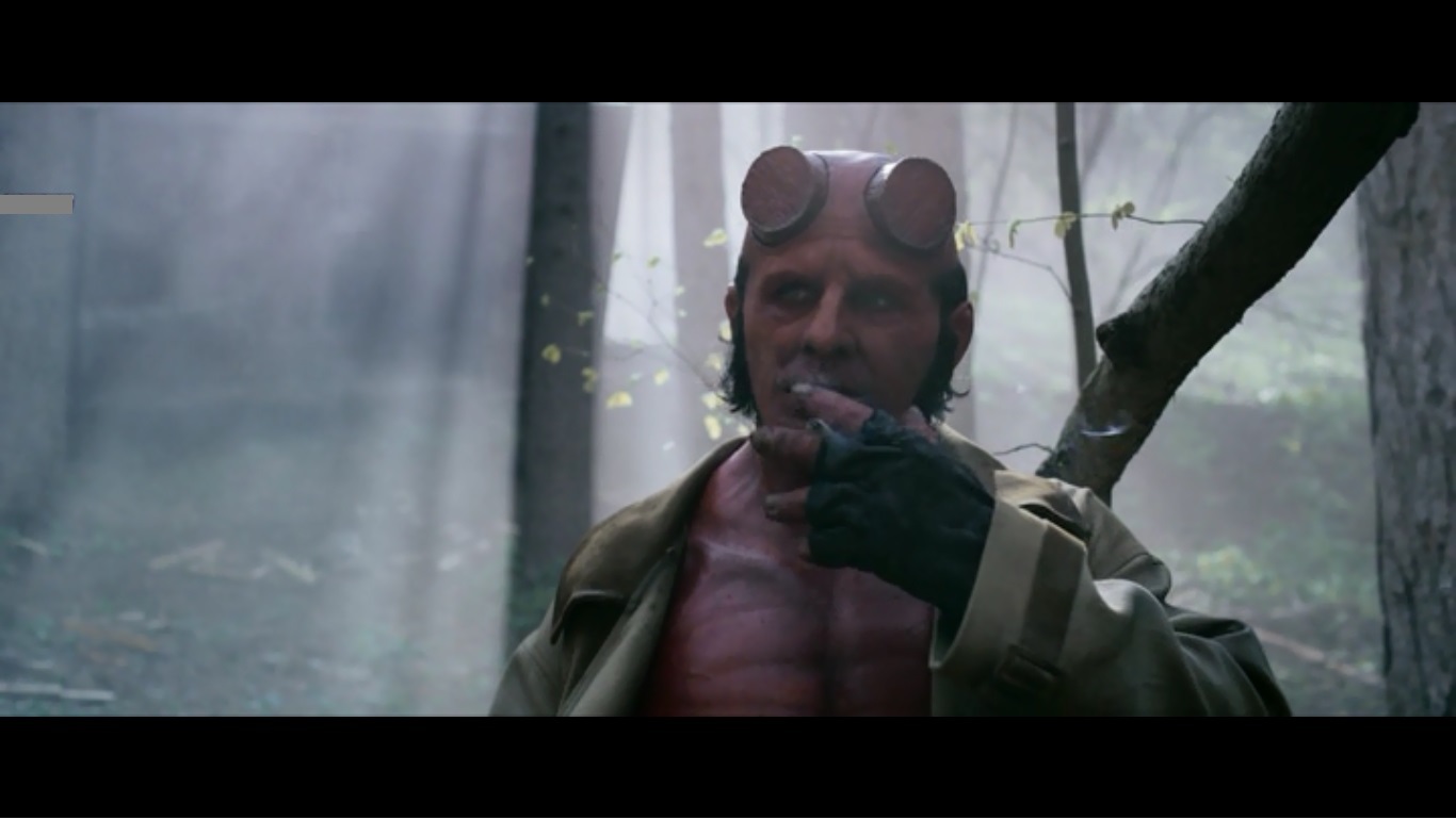 Тут стоит сразу сказать, что встречал мнение о том, что именно этот фильм ближе всего к оригинальному комиксу в плане раскрытия персонажей. Ну... Не знаю, я комиксы не читаю. Может и так. Но никуда же не деться от сравнения Хеллбоя с его образом из предыдущих фильмов. Причем, это уже третье переосмысление. Зачем? Я не понимаю. Было два отличных фильма, которые снял Гильермо дель Торо. Это были стильные фильмы. С своеобразным визуалом, присущим только фильмам дель Торо. Потом вышло новое перосмысление от Нила Маршалла. И я не принял этот фильм. Не понял, зачем делать фактический перезапуск серии. Графика лучше не стала (ну, не настолько много прошло времени между фильмами, чтобы "освежать" ее). Актер Дэвид Харбор начисто проигрывал в харизме Рону Перлману,