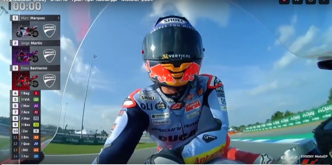 А вот Хорхе Мартин не успел показать весь свой потенциал: он падает и будет стартовать третьим. На второе место пробился Энеа Бастианини. Также испортил квалификацию и Марк Маркес: он тоже упал. Вообще, падений было много.