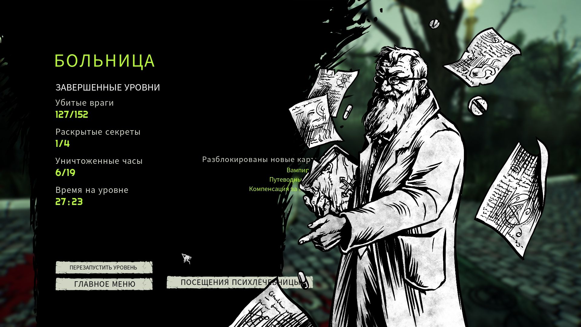 и мы снова оказываемся в "дурке". Тут уже светло и беззаботно: можно прокачивать активные и пассивные скиллы и делать выбор оружия.