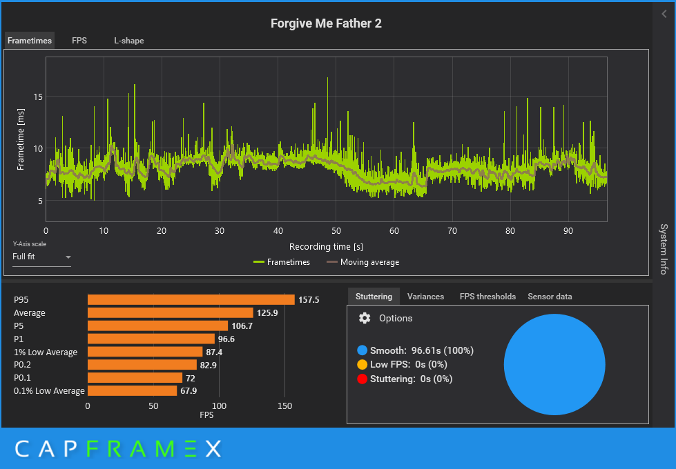 Тестовый отрезок мониторился через программу CapFrameX. Результат теста вышел таким (настройки эпические):