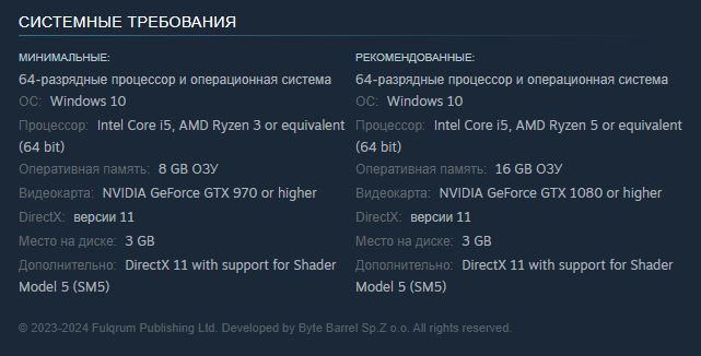 Для игры заявлены следующие системные требования: