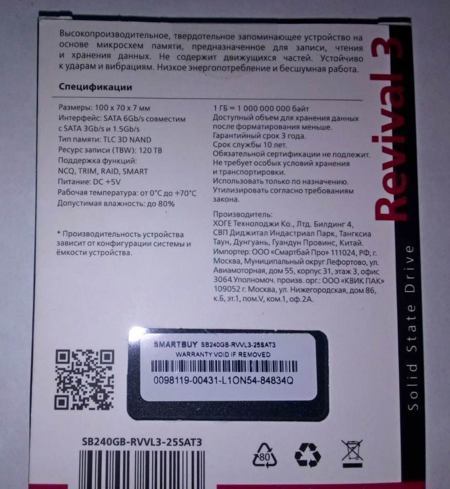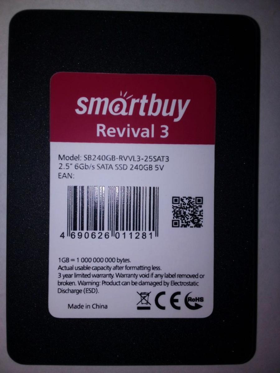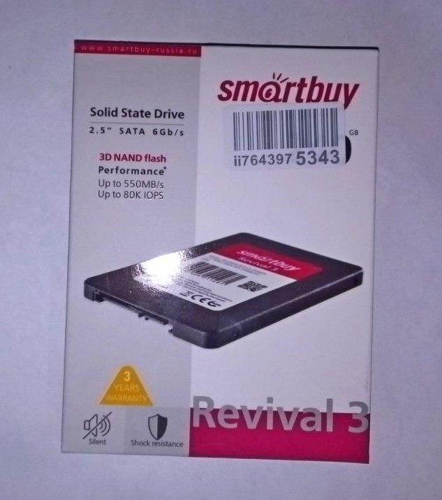 Для установки операционной системы был приобретен ССД накопитель Smartbuy Revival 3 форм-фактора 2,5'' объемом 240 Гб.