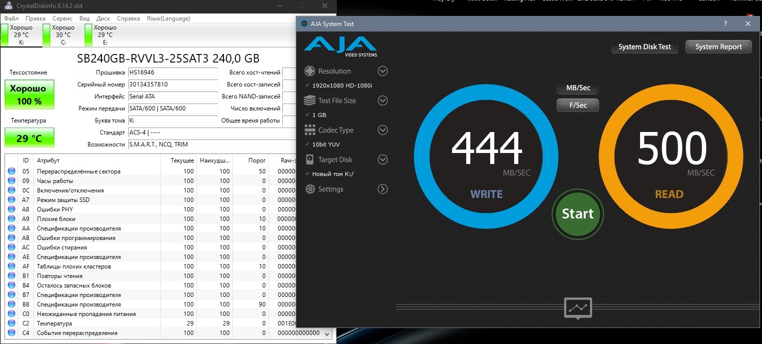 Теперь программа AJA System Test: