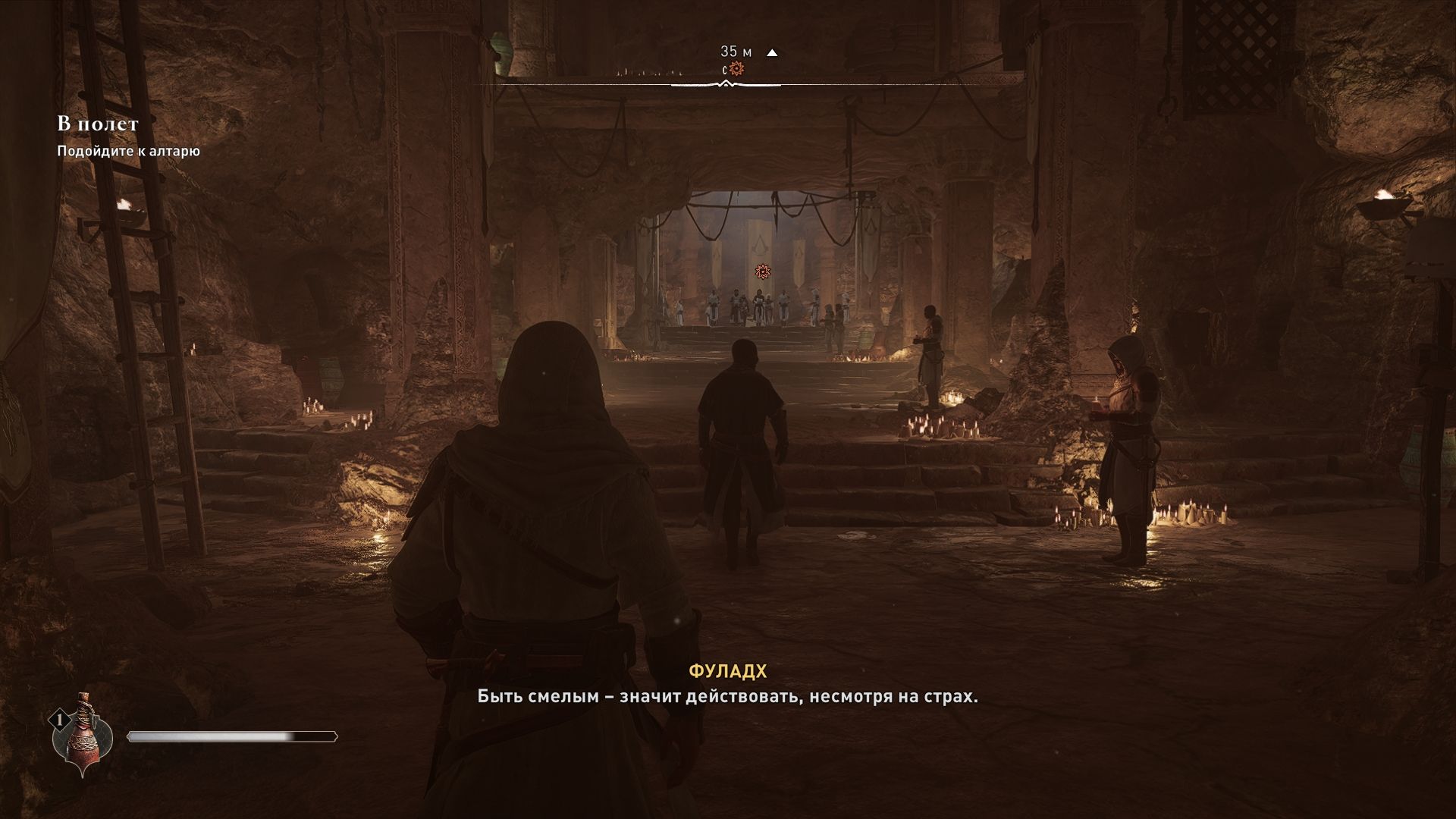 мы вынуждены бежать из Багдада на тайную базу ассасинов. Нашим куратором будет женщина-ассасин (ассасинша?), обладающая мерзким хриплым голосом (курила много).