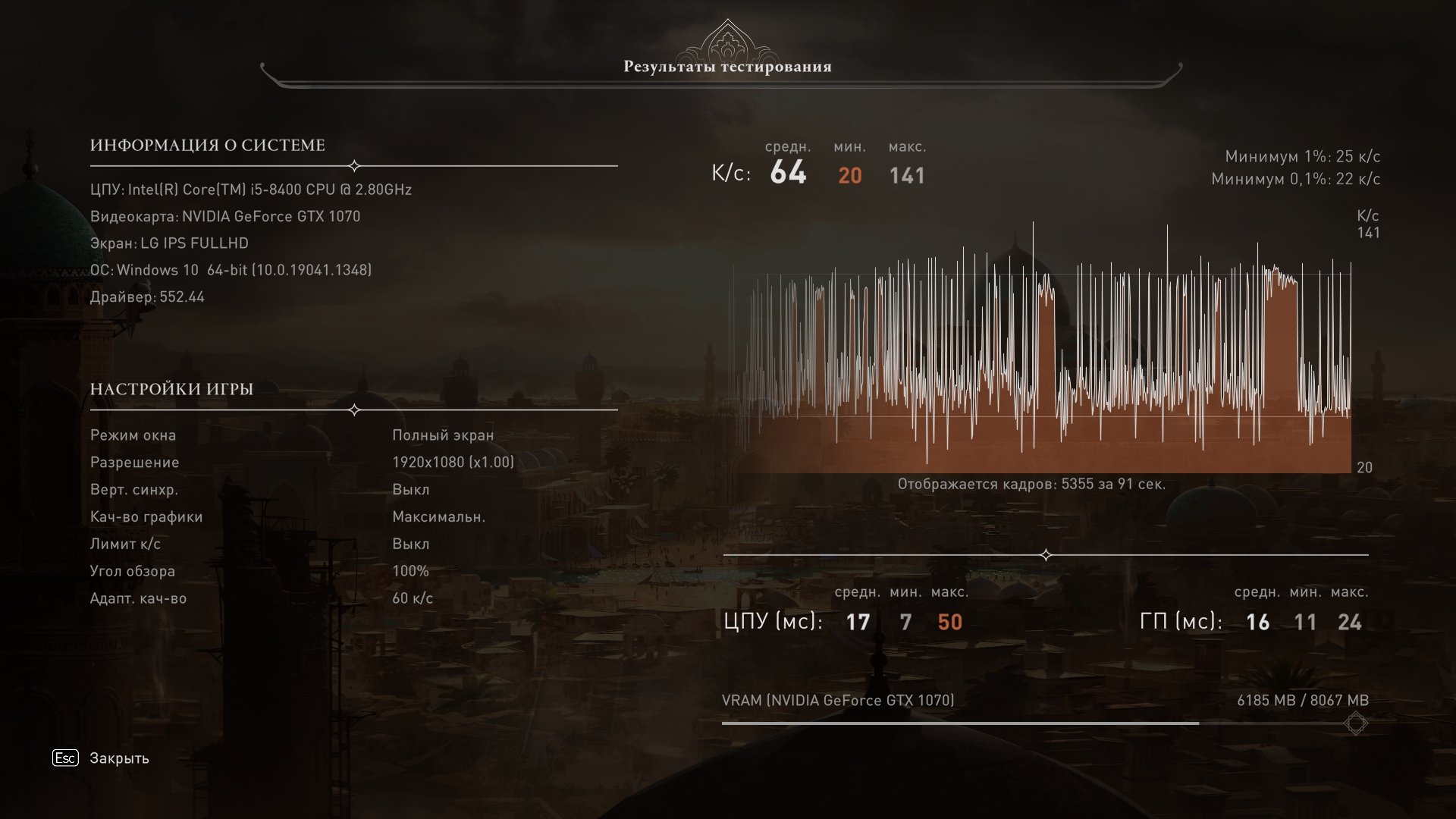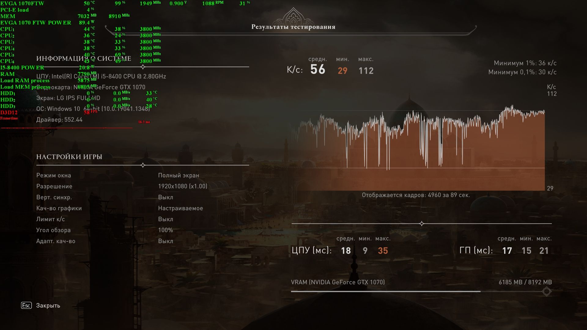 С одной стороны, для "максимальных" настроек, результат нормальный. Игра сильно фризит, даже на ССД. Некоторые скажут, что тут включено масштабирование. Но при его отключении, настройки становятся "настраиваемые". Посмотрим, какой будет результат без масштабирования: