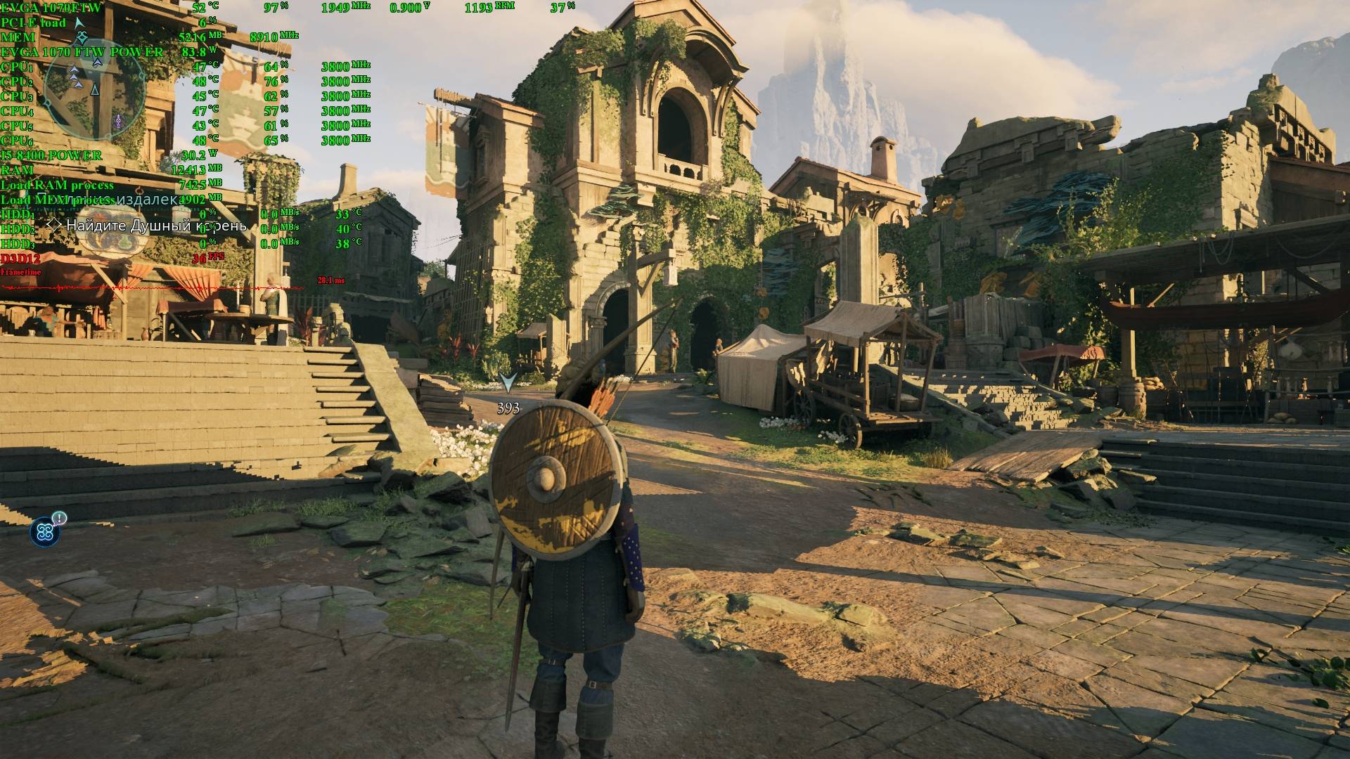 Забег теста прошел в городе, в начале игры. Настройки условно средние, FSR в режиме "качество".