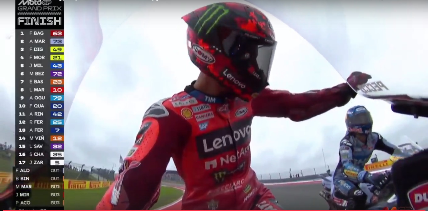 В спринте Баньяйя выполнил отличный прорыв со старта и навязал борьбу братьям Маркесам. Но не надолго. Как итог - опять третье место. Вторым приехал Алекс Маркес. Ну а победил опять Марк Маркес.
