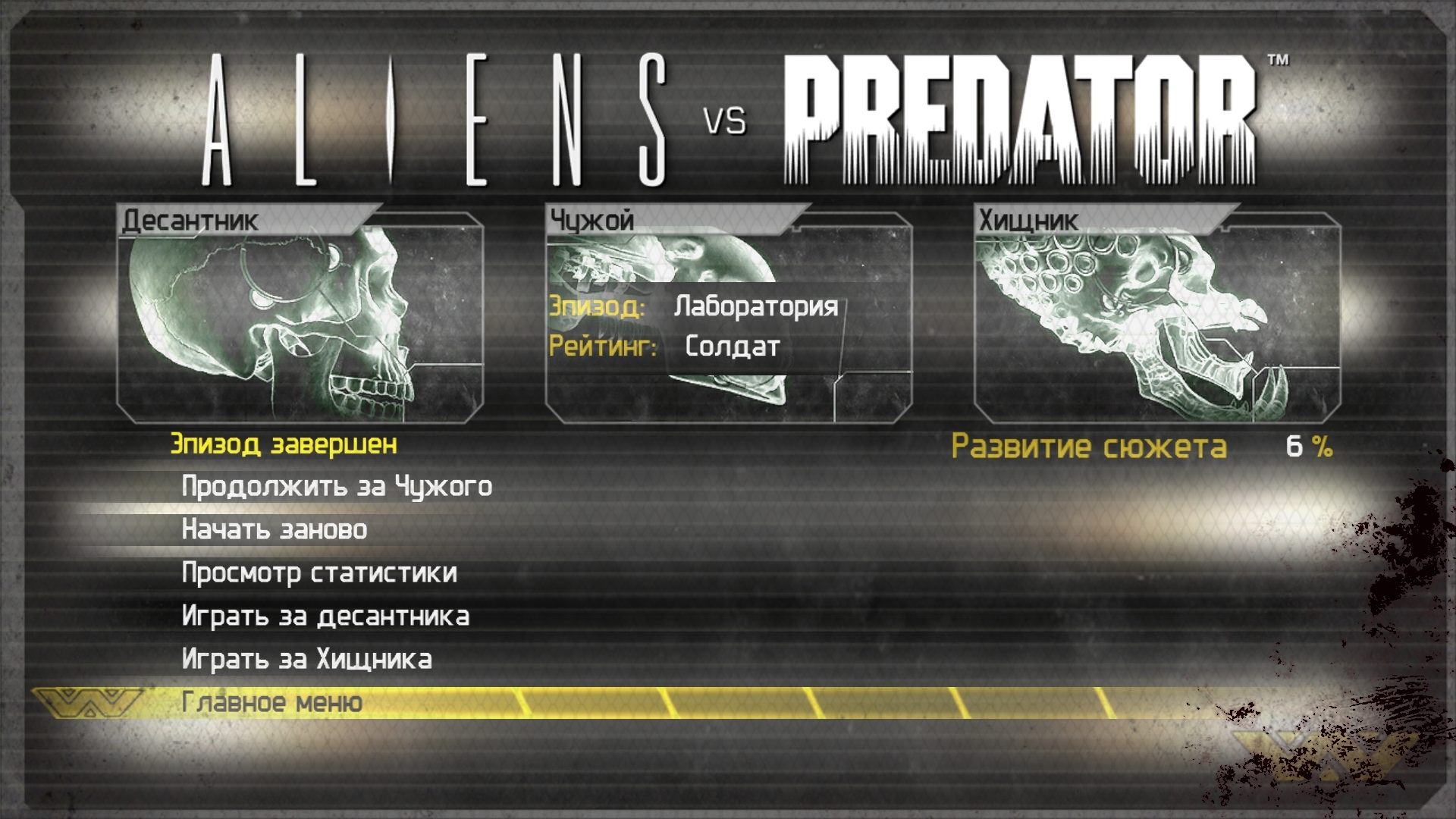 Сама игра содержит три большие части, где мы отыгрываем роли за человека (космодесантника), Чужого и Хищника.