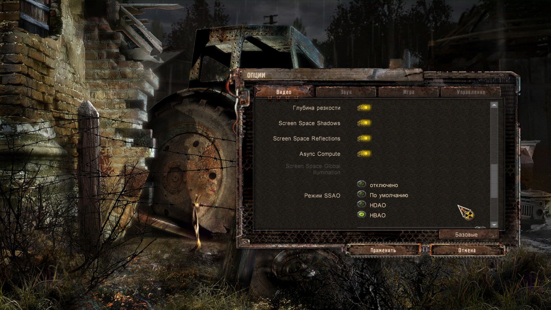 Максимальные настройки.На что это похоже? На один из модов, которых огромное количество на эту игру. А еще прямо режет глаза "мыло" вдали. Я даже перепроверил: FSR отключен. Почему так вышло? Наверно, главной "фишкой" графики ремастера стало Screen Space Global Illumination. То есть глобальные отражения. и они работают, правде так себе. Их можно отключить и выбрать "классический вариант" НВАО: