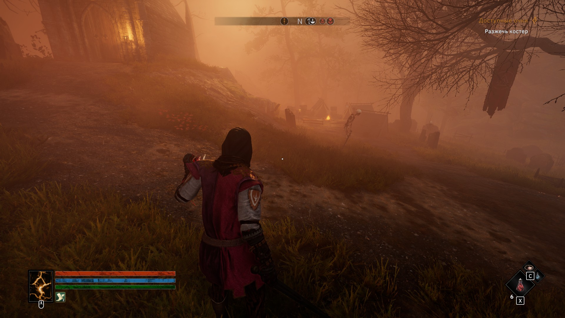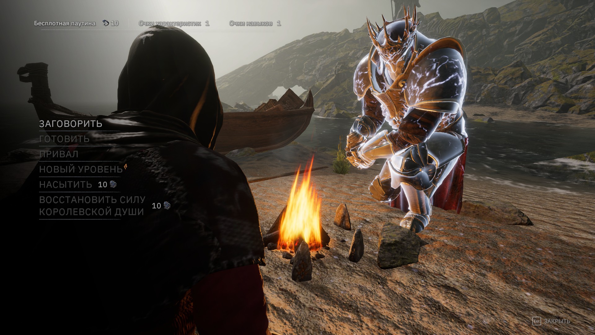 Игра поддерживает сохранения в любой момент времени. Отдыхать же, прокачивать навыки и творить "алхимию", можно во время привалов у костра. Это отдаленно роднит игру с "соулслайками". Но лишь самим присутствием костров. Иногда, у костра, Артур дает объяснение о месте, где мы находимся.