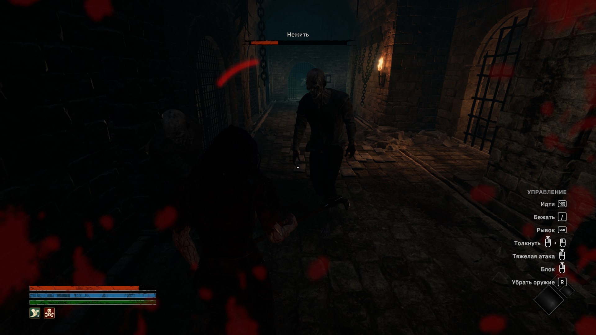 Только стрельба из лука анимирована нормально.Есть блок, но он не особо эффективен. Можно быстро смещаться при атаке (уворот). Есть и магия. В моем случае первым магическим "оружием" выступал некий аналог вампиризма. Мы просто высасываем часть здоровья из противников, восстанавливая свое. Очень удобно. На низком уровне сложности при таком выборе магического средства аптечки и не нужны.