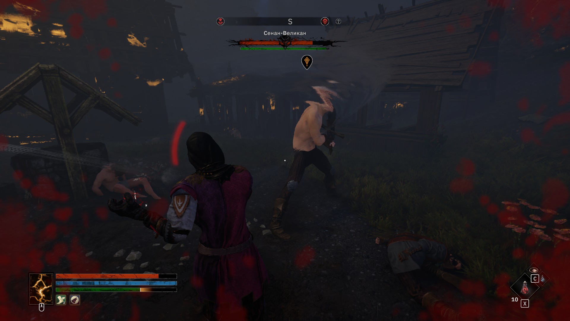 Играть от первого лица не лучше. Ибо при сражении с группой противников, мы совершенно не видим, что там происходит сбоку.