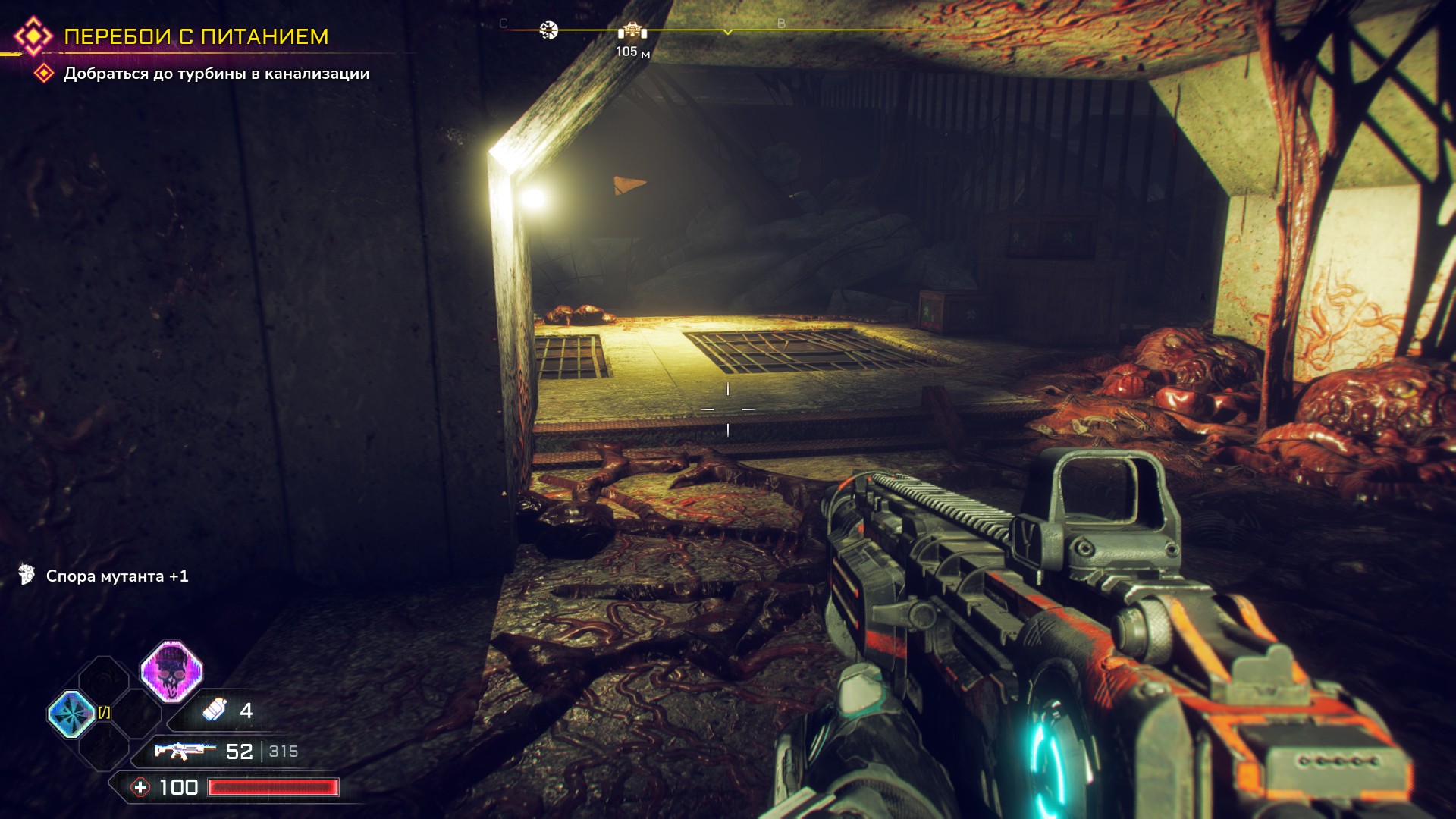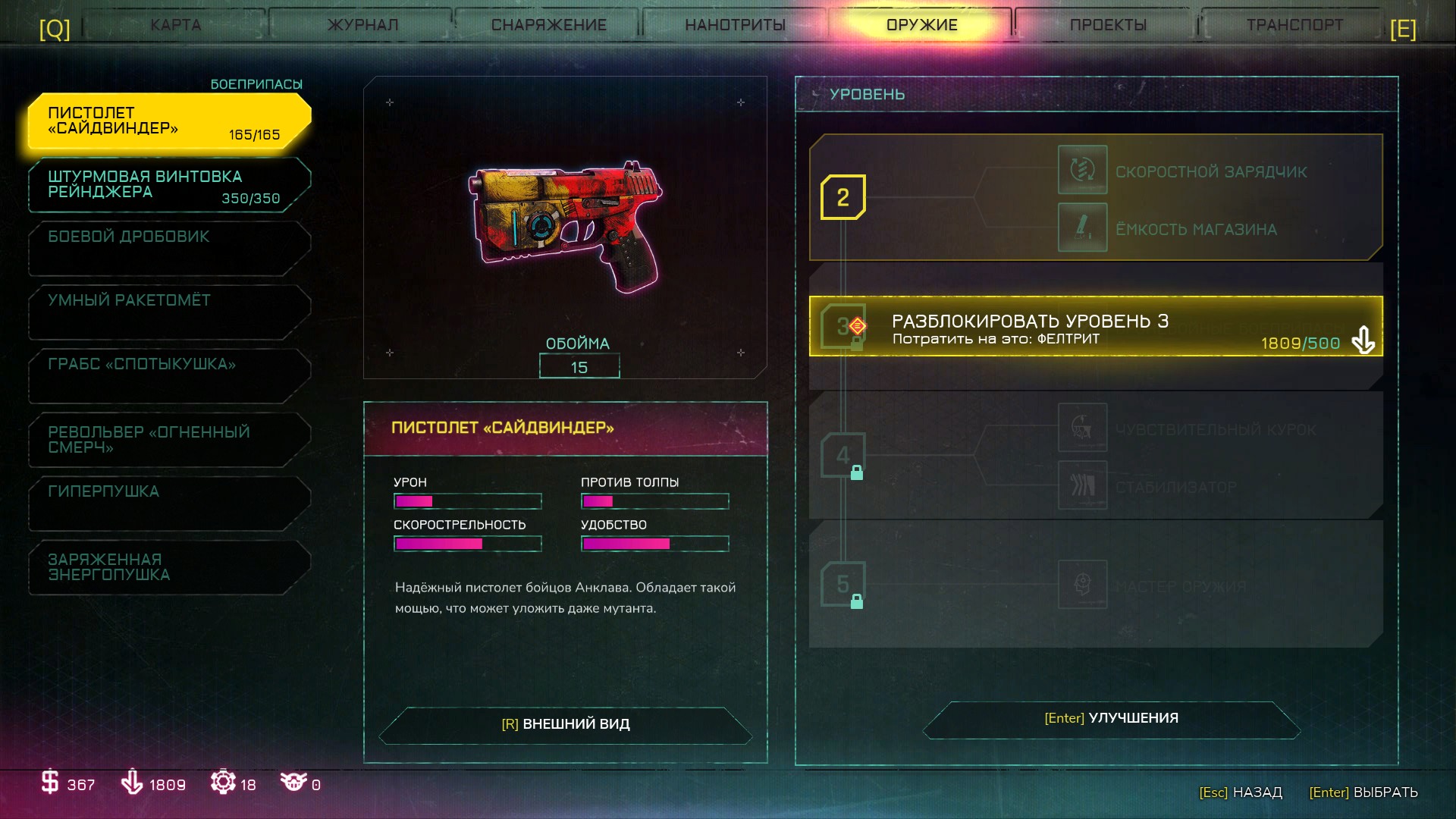 Например, «кинетический удар» я почти никогда не использовал. Ведь есть оружие и подпускать к себе врагов на расстояние рукопашной нет смысла. С оружием тут не очень… Долгое время мы будем обходиться классическим набором: пистолет (с автоматическим режимом), автомат и дробовик. Получить доступ к более навороченным вариантам сразу не выйдет. Все оружие можно прокачать.