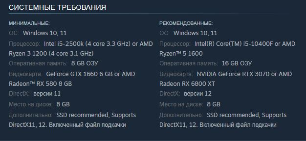 Игра, как я понимаю, как раз и базируется на проклятом UE5 – заявленные рекомендуемые системные требования являются весьма нескромными для такой игры: