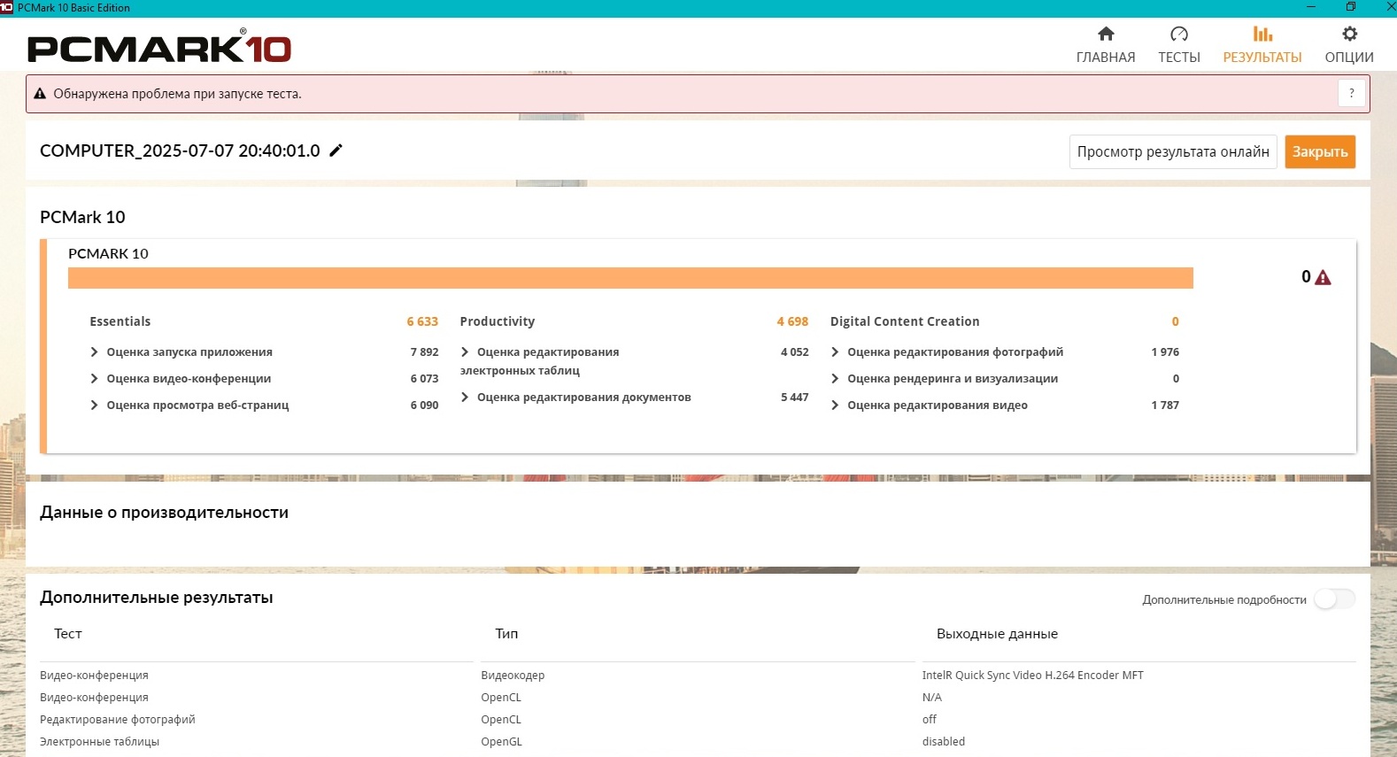 Тест не пройден...Причину я не знаю, но тест не пройден. А ноутбук