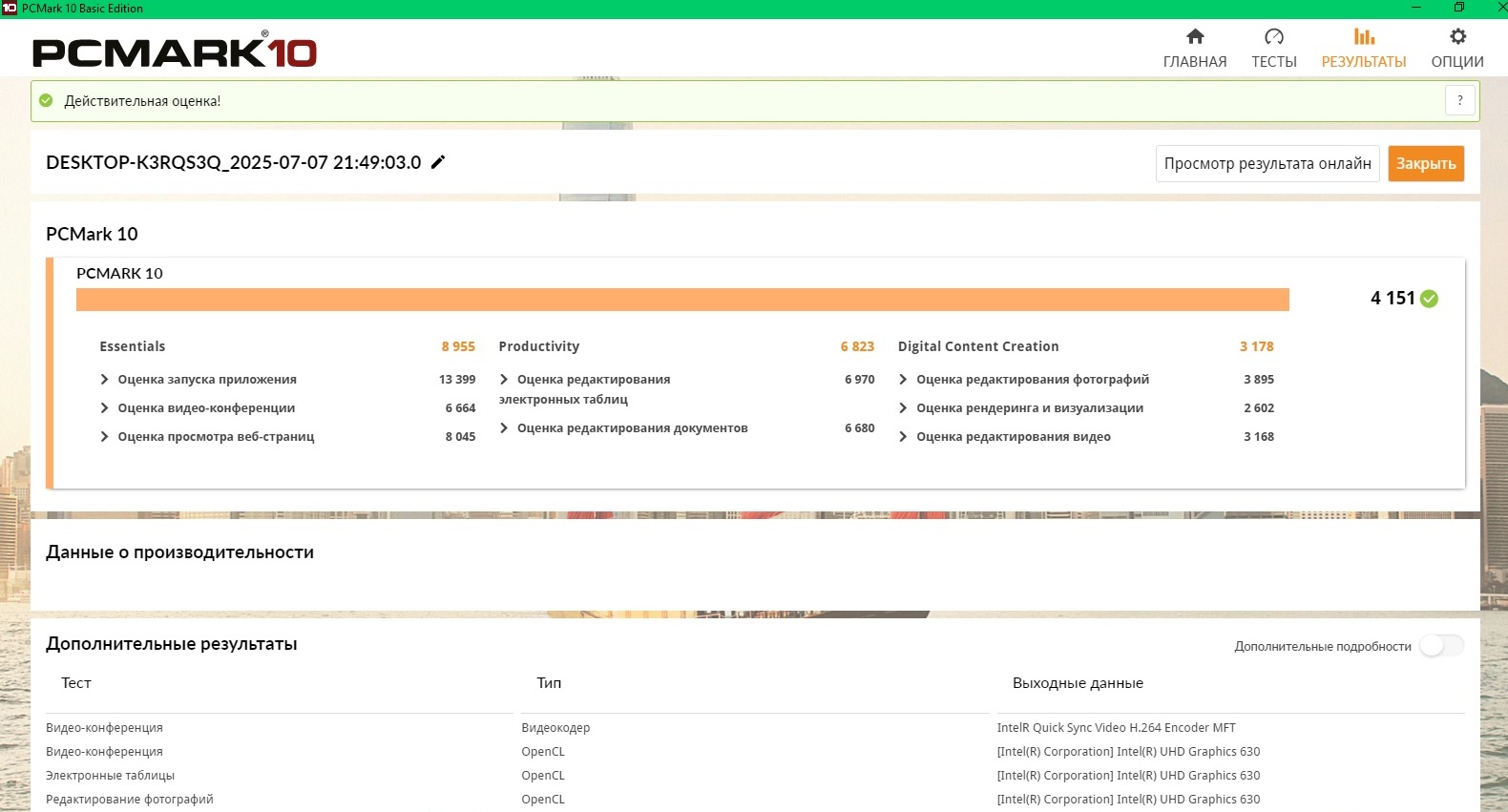 Самым тяжелым (и нудным) будет тест PC Mark 10, который самый «всеобъемлющий». Там есть и довольно тяжелая часть по кодированию и рендерингу. Поэтому ПК с GTX 1070 я не тестировал, он там будет явно сильнее остальных. Хуже то, что ПК с Intel Core i5-2500 именно на «графике» и прекратил взаимодействие с бенчмарком.