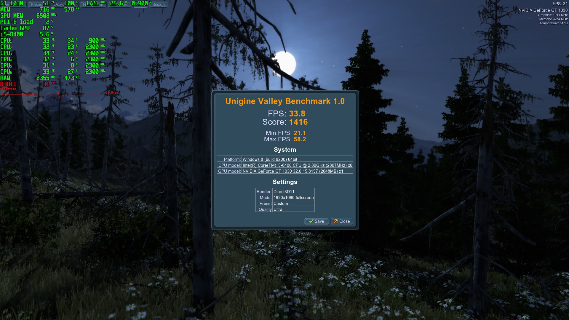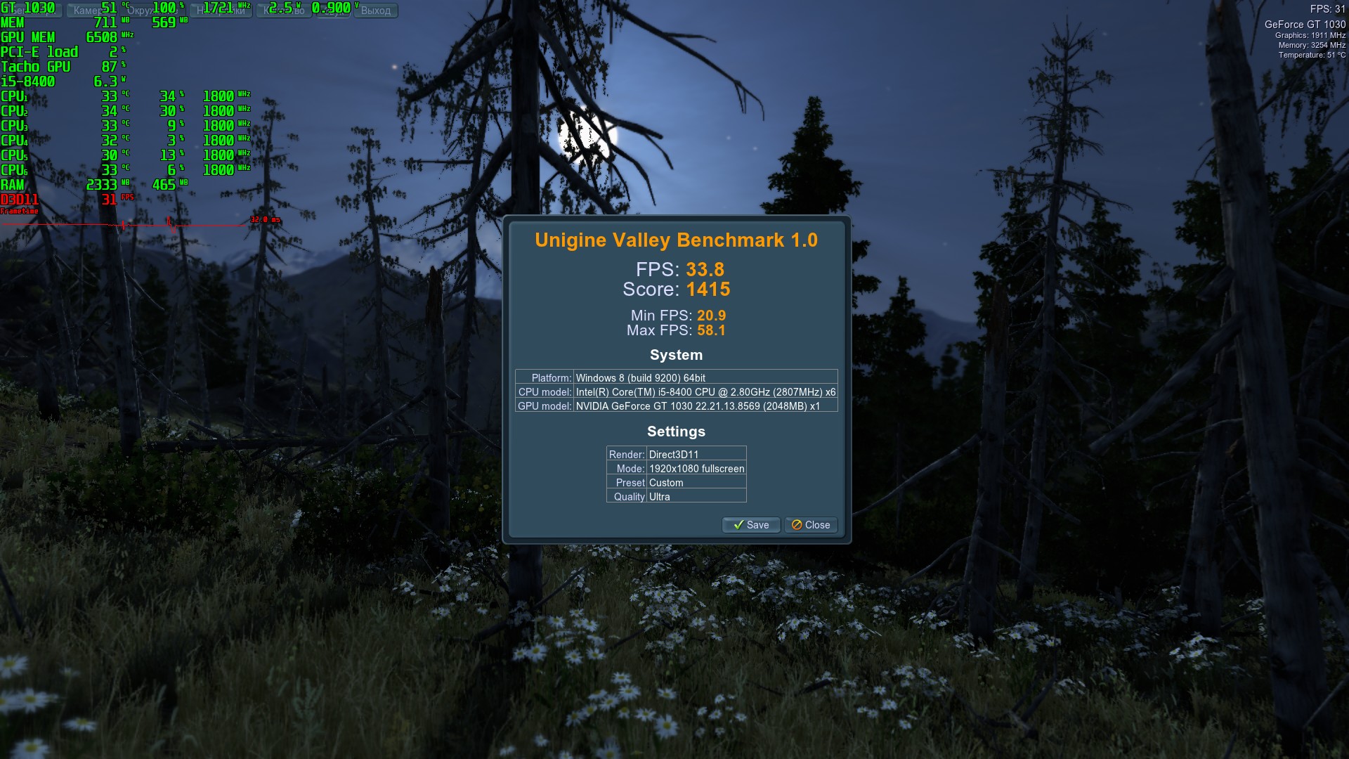 Для старого бенчмарка Unigine Valley вообще нет разницы в версии драйвера – 33,8 FPS (1416 баллов против 1415 в пользу нового драйвера):