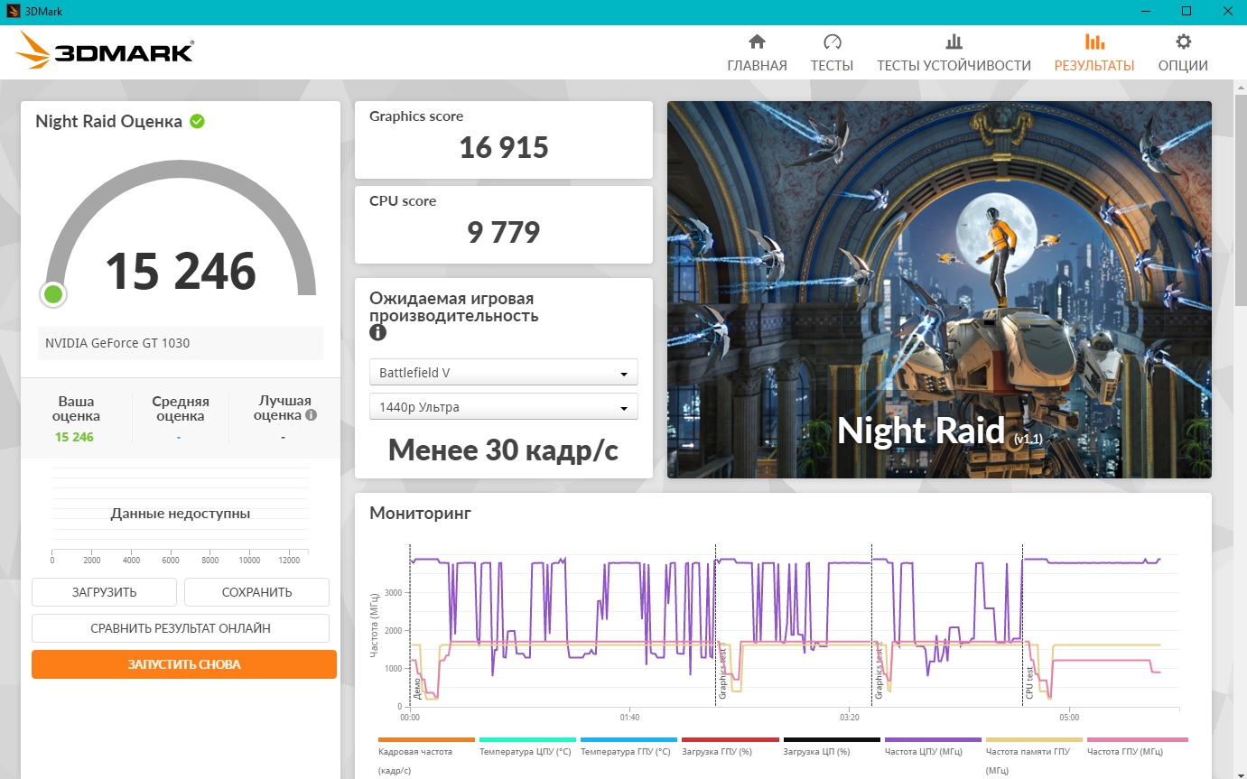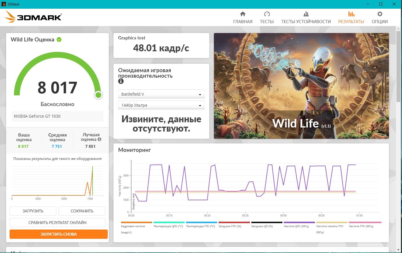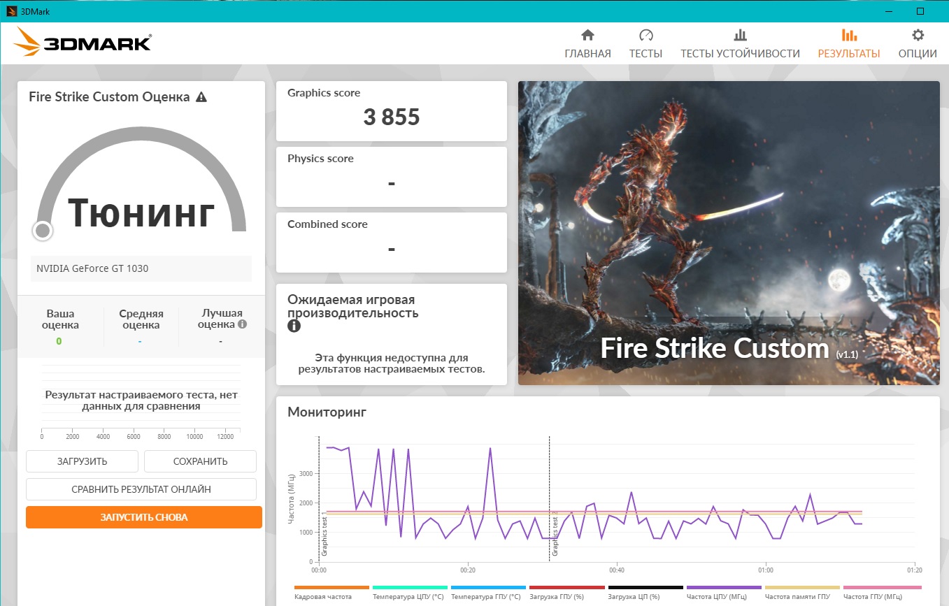 Драйвер 581.57Но в самом бенчмарке ведь есть «легкие тесты», которые можно запустить на GT 1030.
