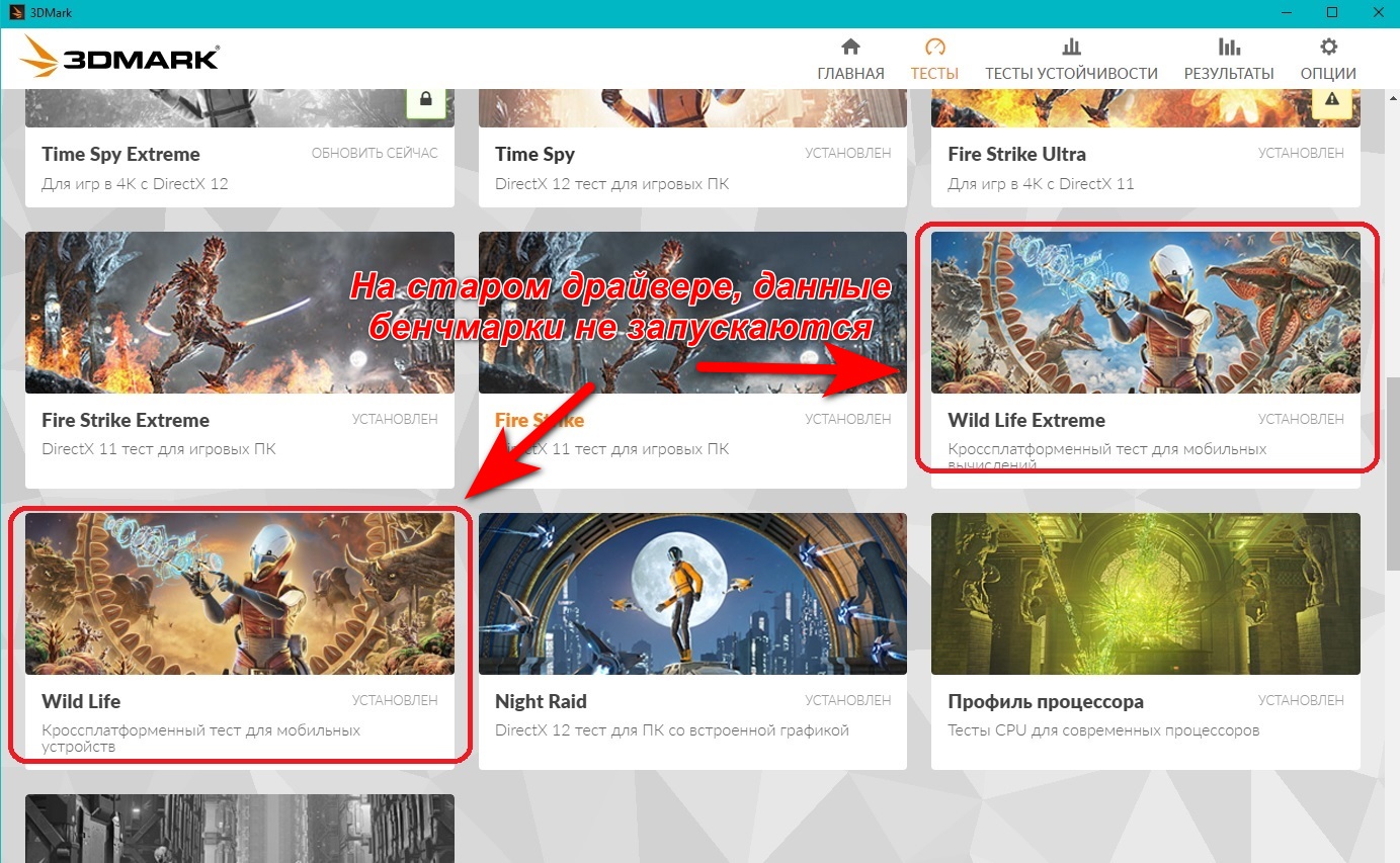 Да, тесты Wild Life и Wild Life Extreme видеокарта вытянет. Но только на новом драйвере. С версией 385.69 данные бенчмарки не поддерживаются…
