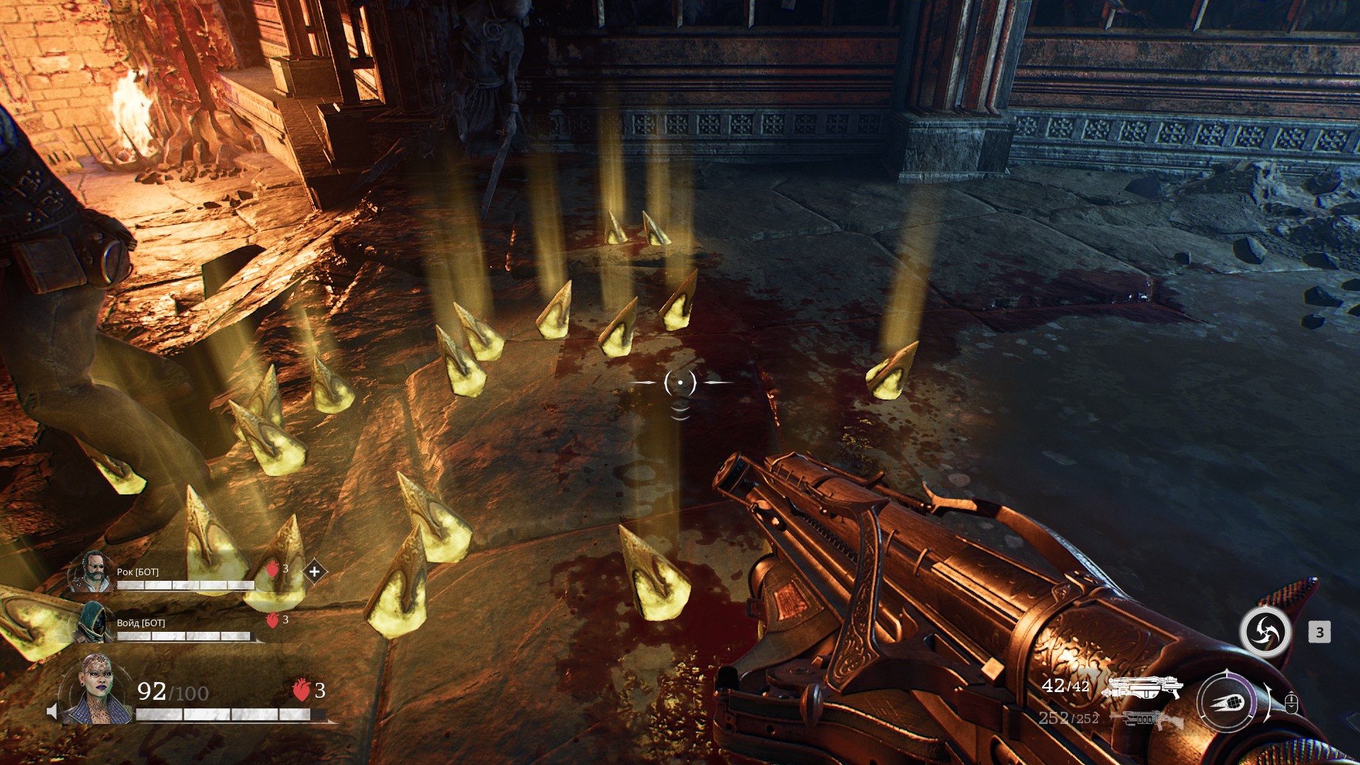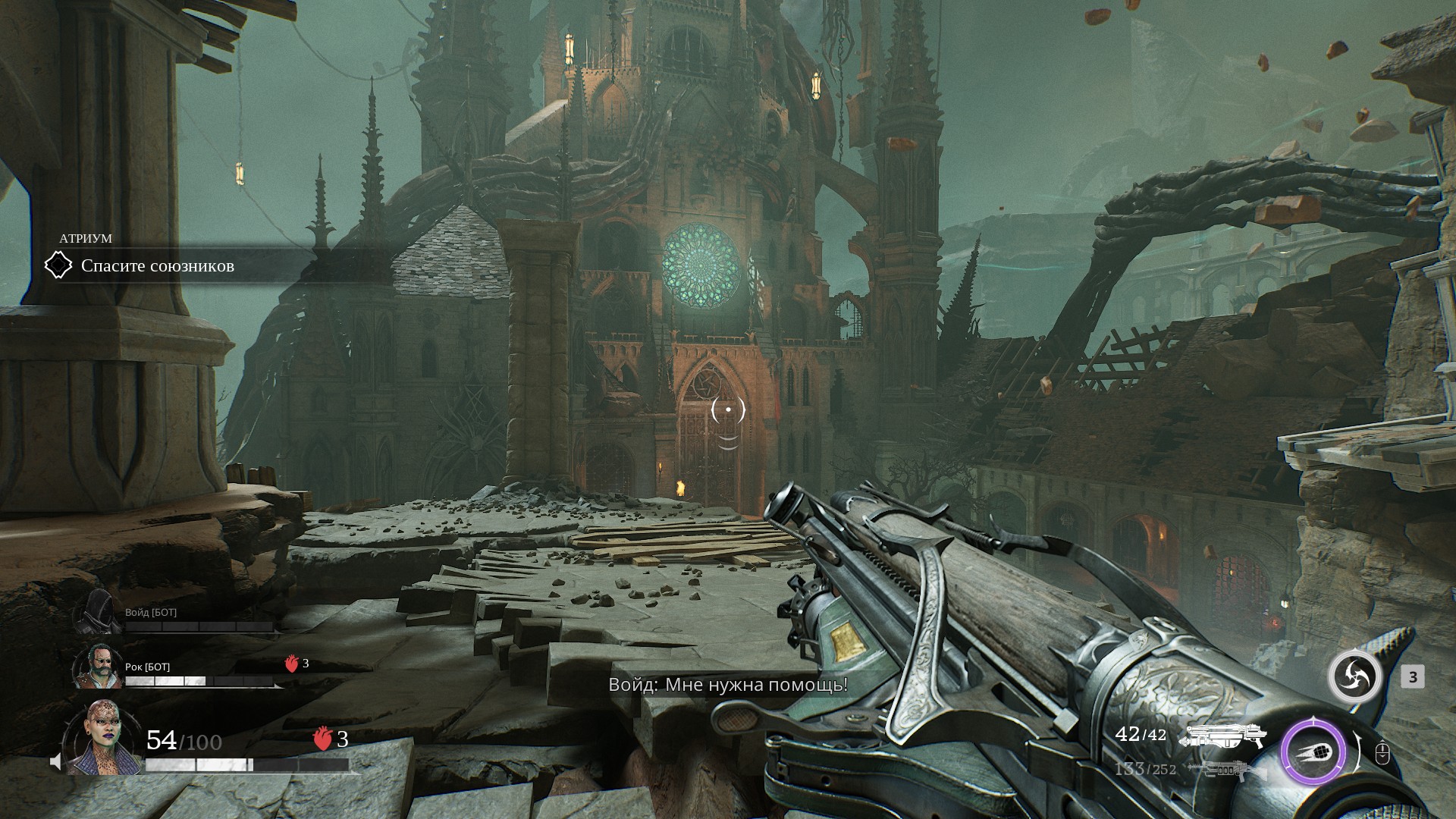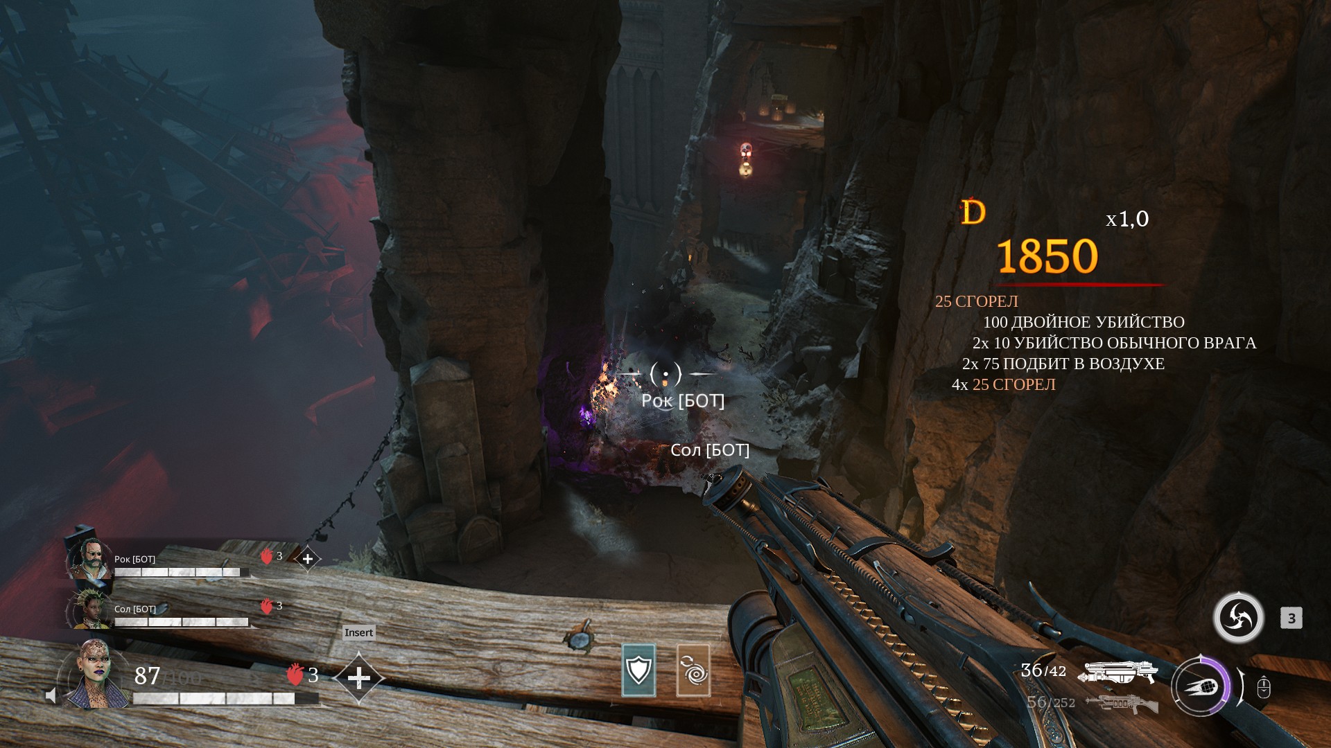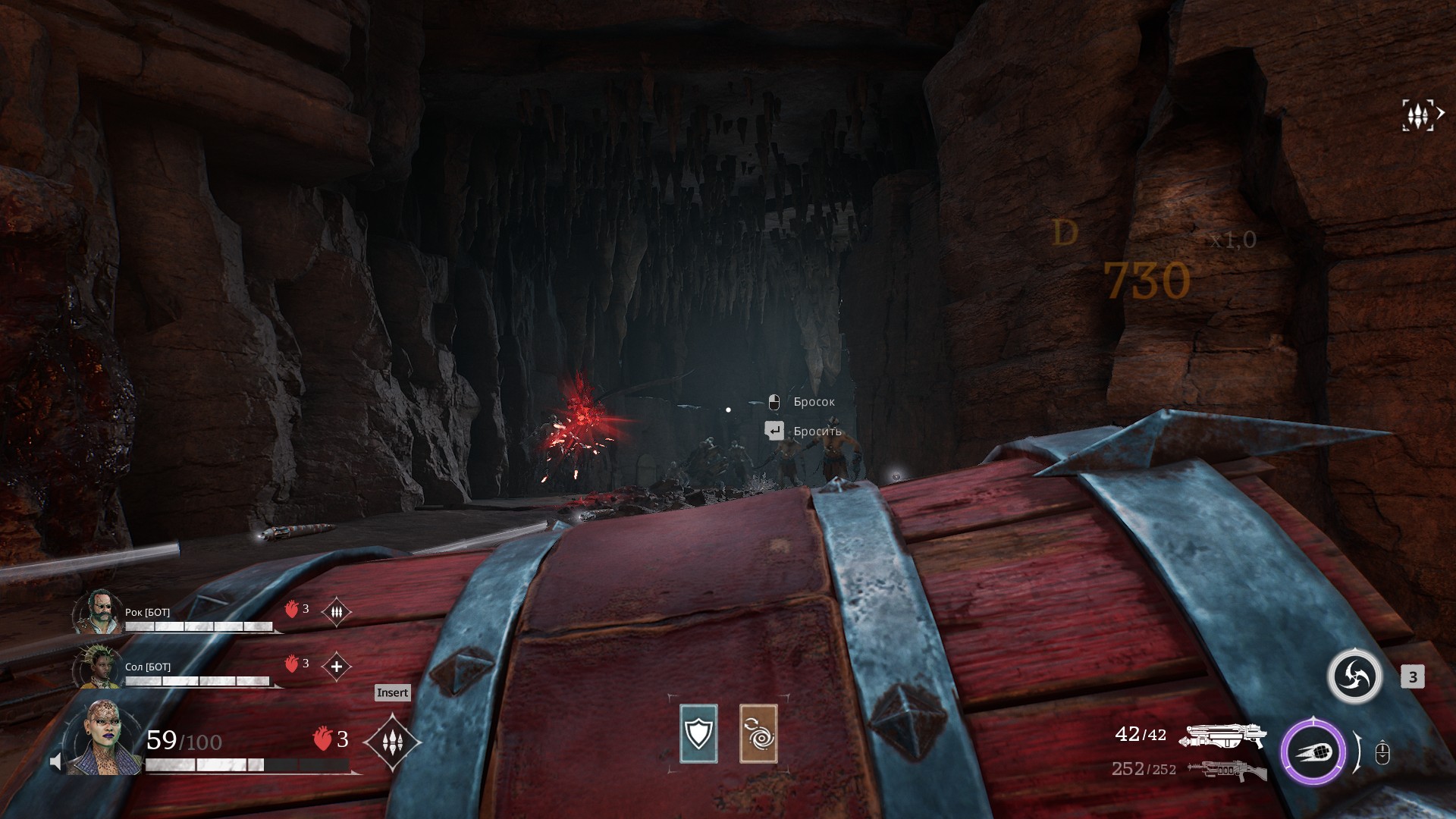 И вот среди этого надо дотащить ту самую «энергобочку» и активировать устройство. Боты в этот момент занимаются своими делами. Да, они много убивают врагов, но путь мне точно не расчищают.