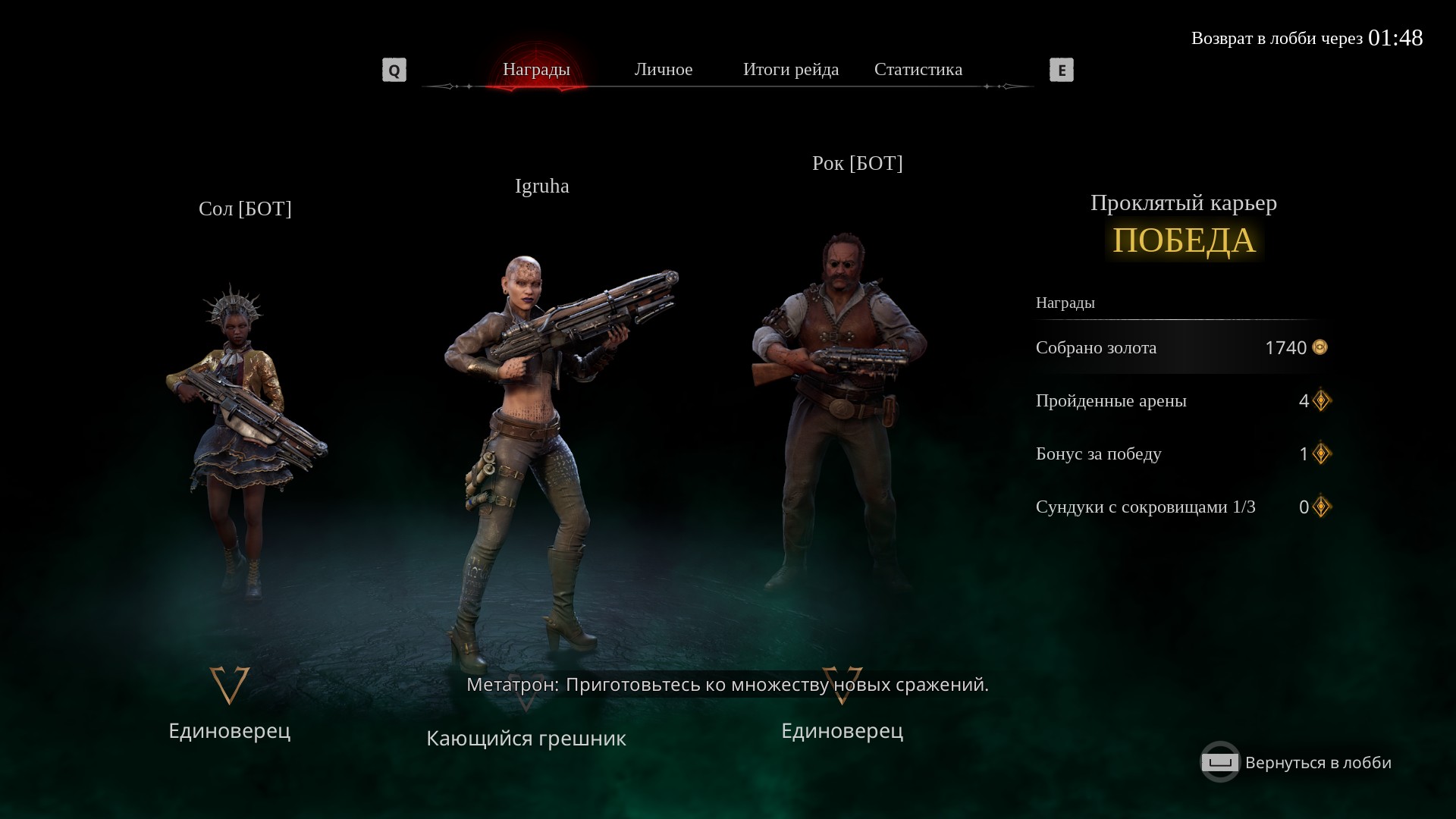Выбор из четырех персонажей