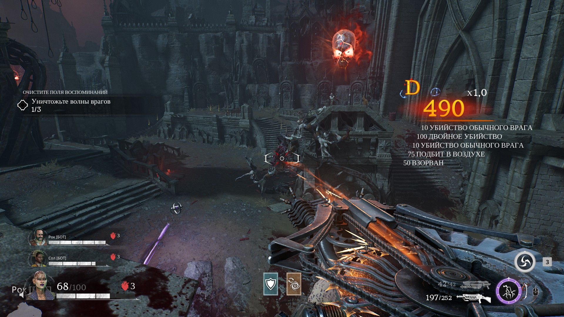 Ничего подобного в одиночных «сюжетных» частях игры не было. Да, там тоже атаки проходили с нескольких сторон. Но все равно можно было одному контролировать ситуацию. Тут же я был просто в центре хаоса. И только низкий уровень сложности не давал мне помереть. Враги тут разные.