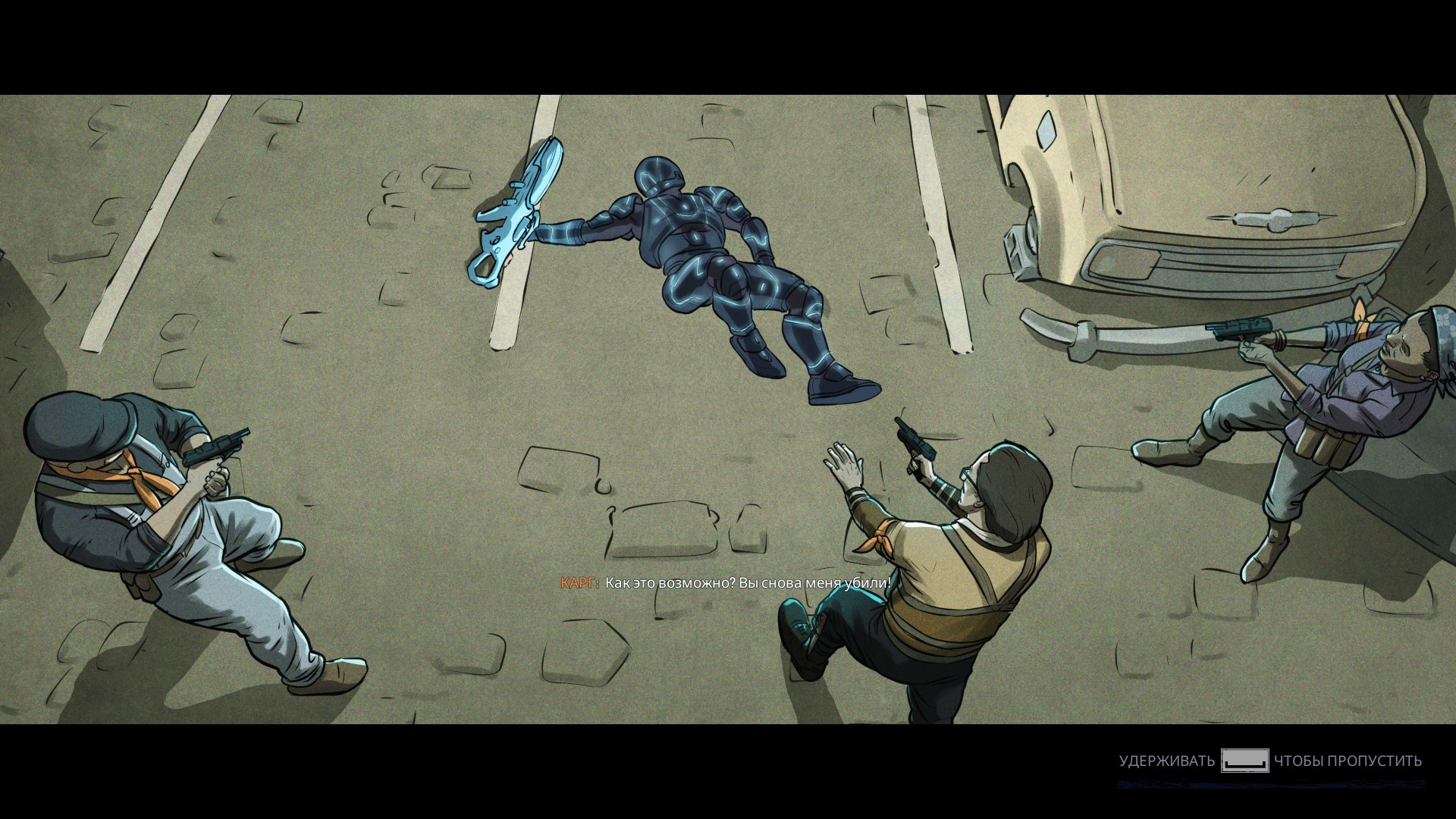 Проблема не только в том, что у пришельцев более совершенное оружие. Они еще могут замораживать время, и даже «закольцовывать» его. Да, это элемент рогаликов. Поэтому тут сюжет довольно интересный. Сам сюжет подается в виде таких миникомиксах, благо есть русский язык (только текст).