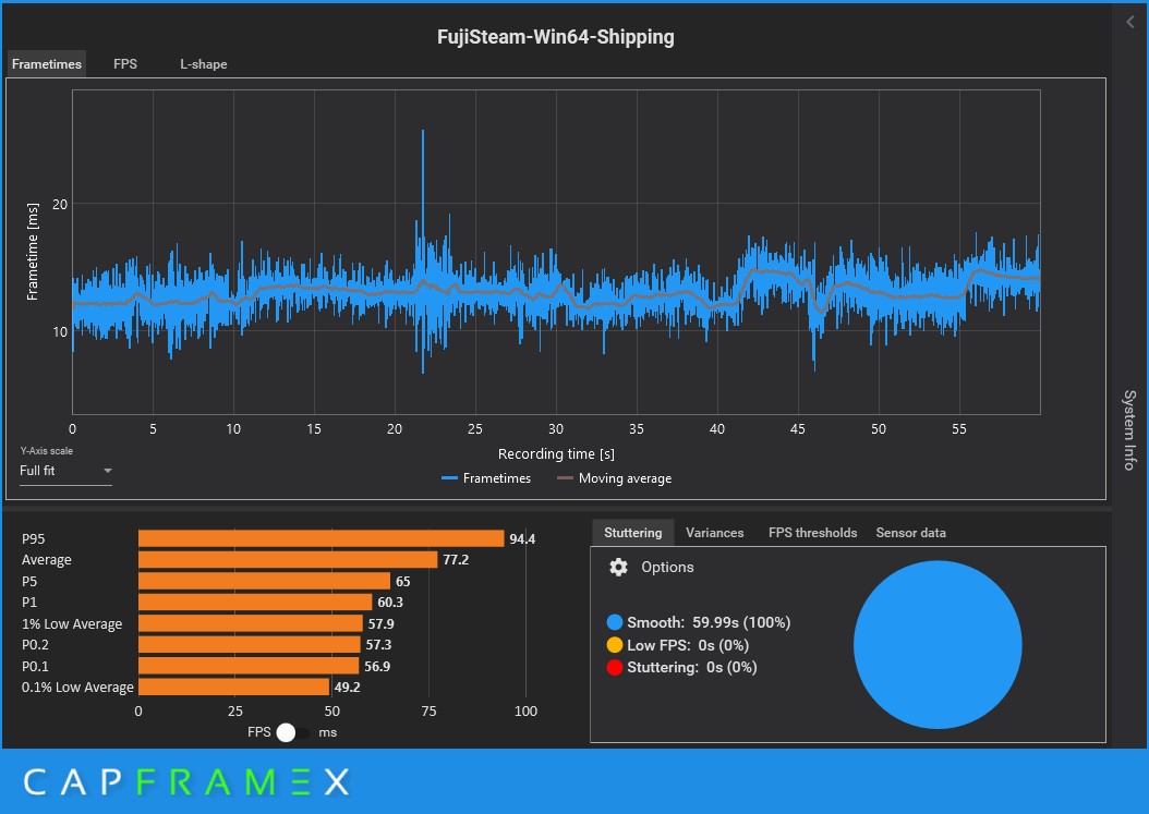Для записи тестового отрезка использовалась программа CapFrameX. Настройки игры были «очень высокие».