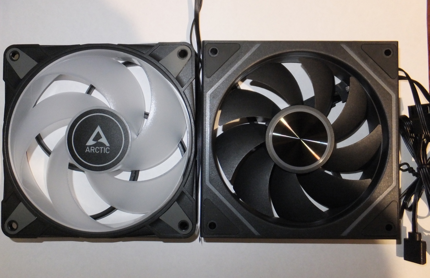 Как видите, при примерно равных оборотах, производительность все же ниже. И тут есть вина уменьшенного диаметра самой вертушки. Но такая разница не критична, уж в моем случае точно. Но такие вентиляторы ставят и на СЖО на горячие процессоры. И там уже два-три градуса (а может и больше) могут играть роль.