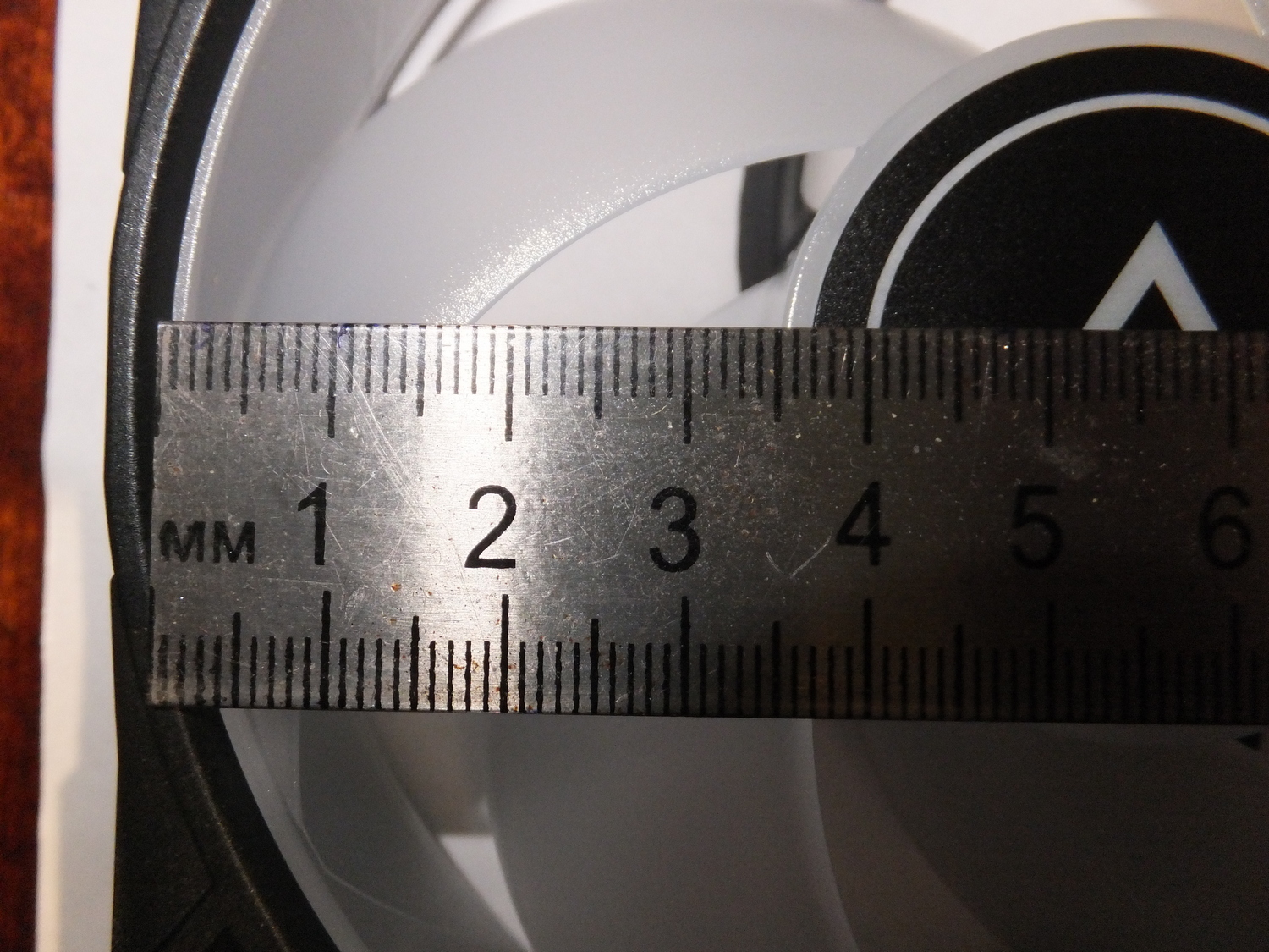 Длина лопасти у вентилятора Arctic P12 ARGB (модель с кольцом) примерно равна 35мм.