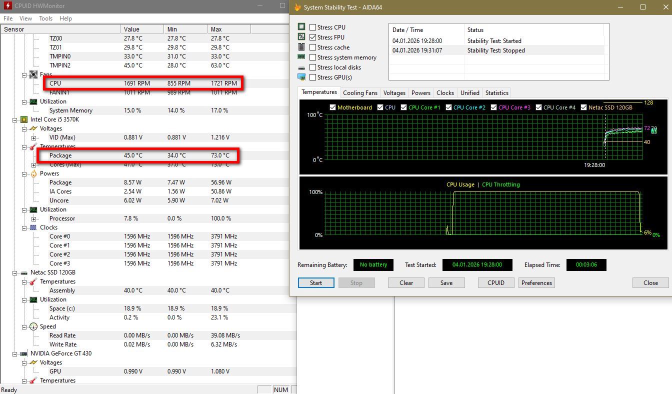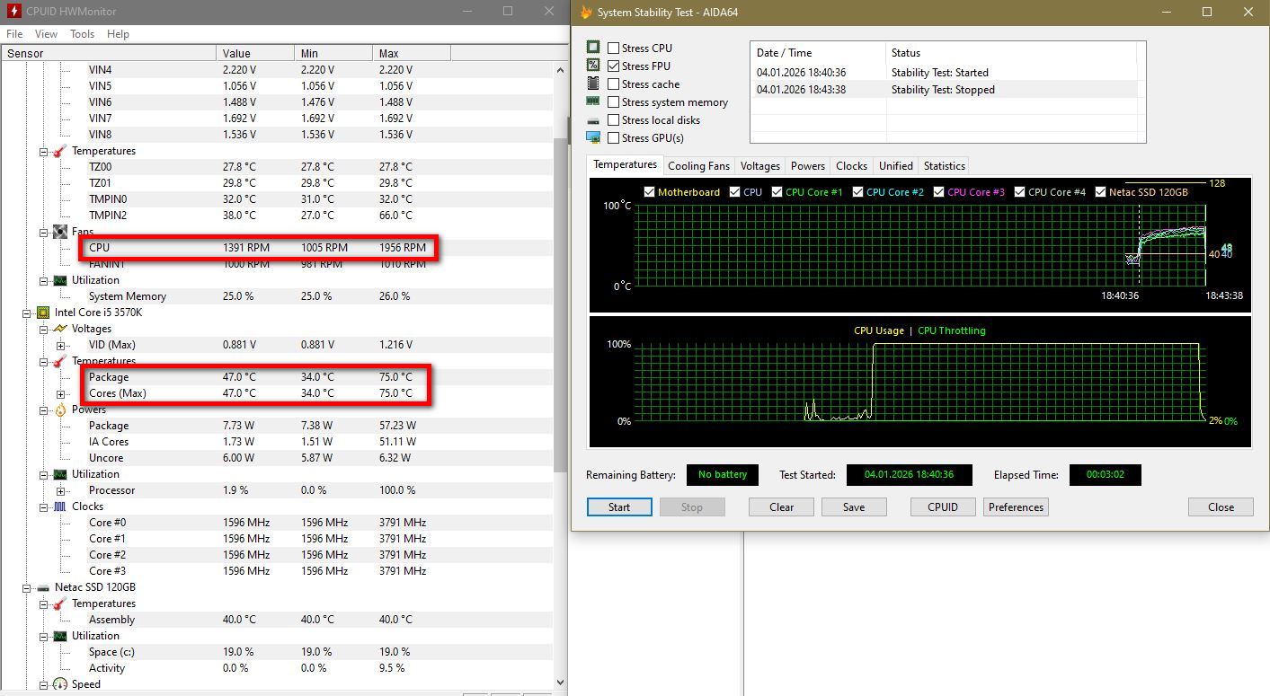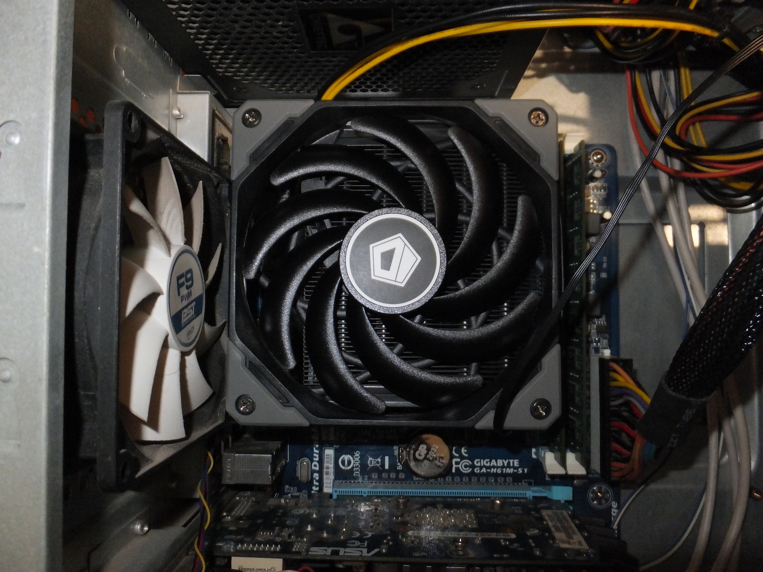 Для начала, я решил проверить производительность вентилятора на кулере ID-Cooling IS-50XV3, который установлен на процессоре Intel Core i5-3570K, который я давно скальпировал. Процессор установлен на плате с чипсетом Н61, поэтому работает в стоковом режиме.