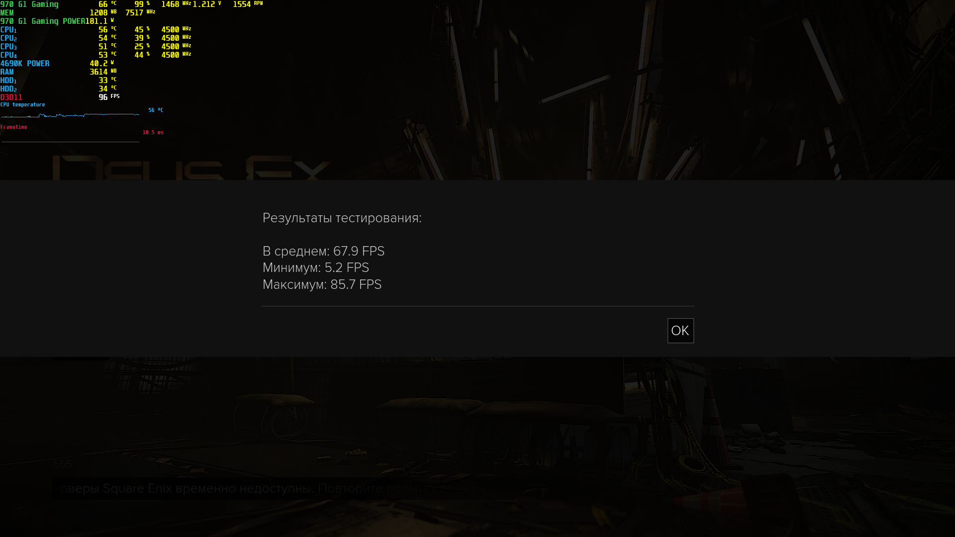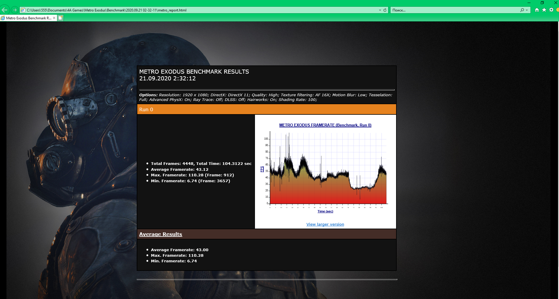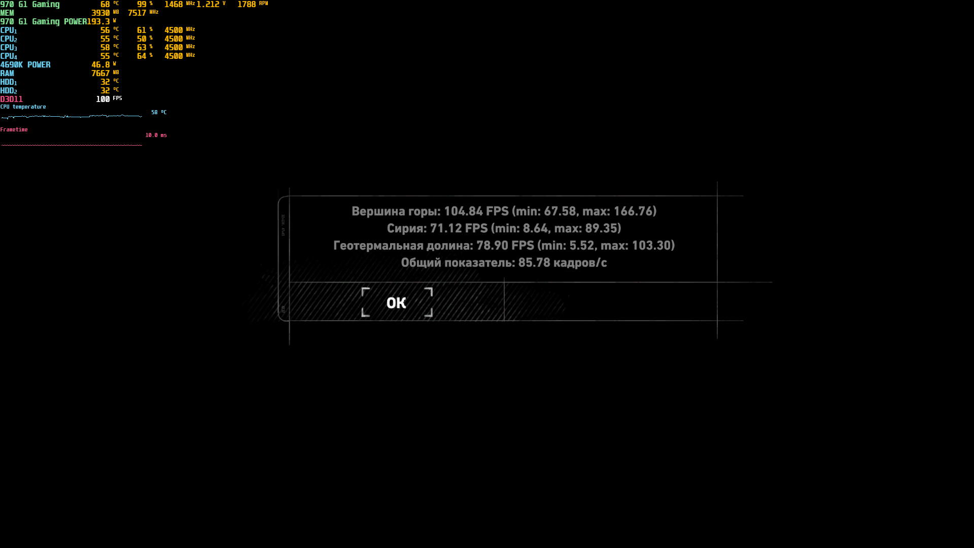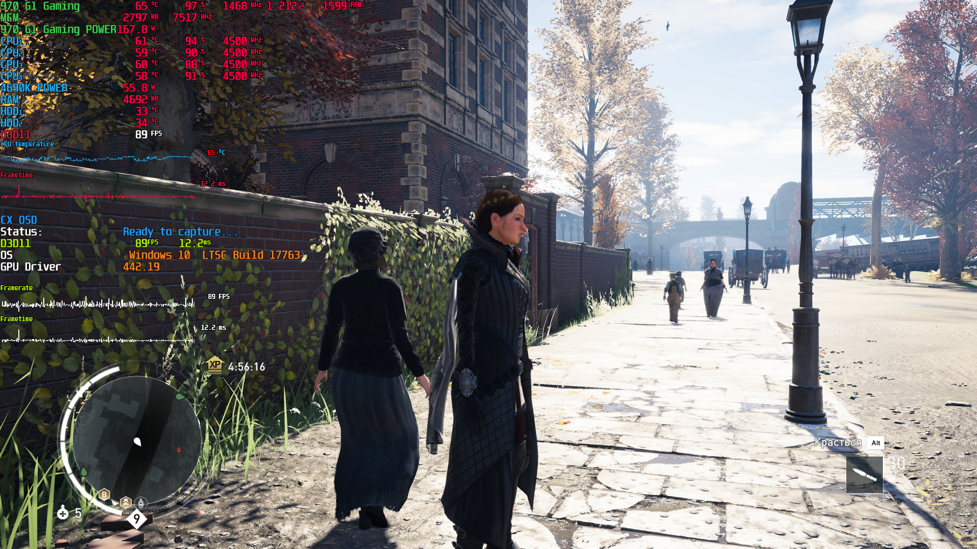 Кроме результата самого бенчмарка, сделал замер производительности при забеге по центральной улице Александрии.
