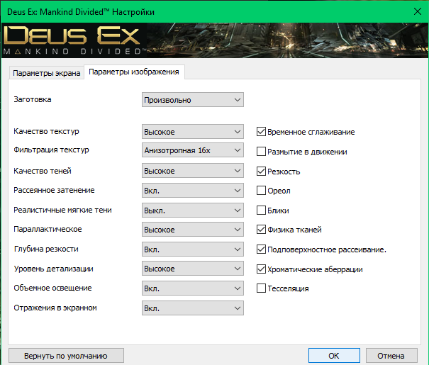 Deus Ex Mankind Divided: очень требовательна к видеокарте. Ни о каком сглаживании не может быть и речи.