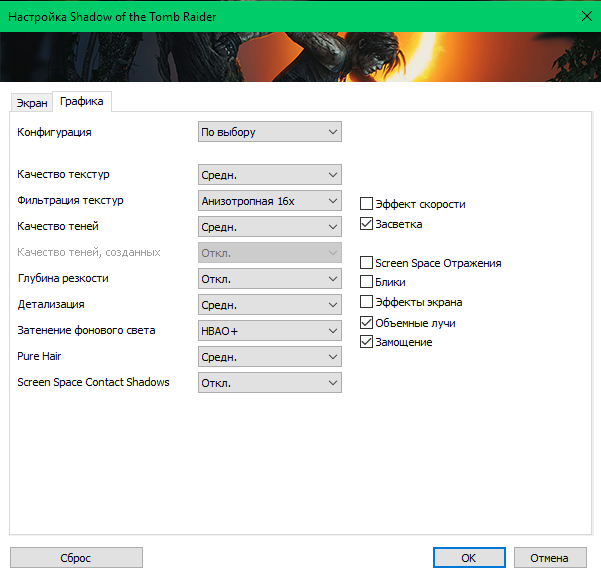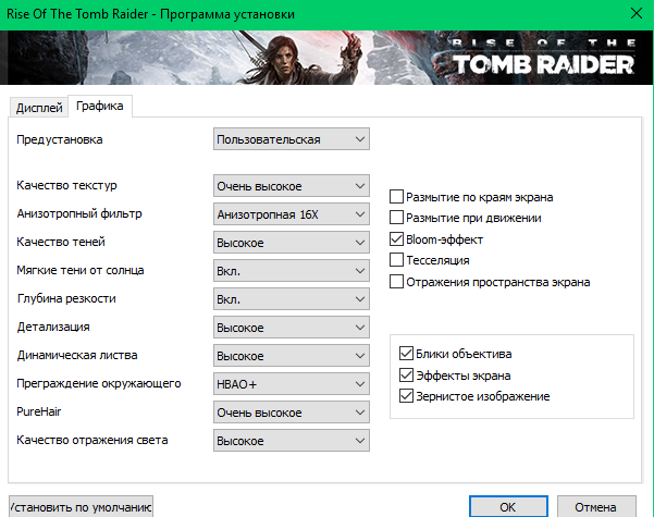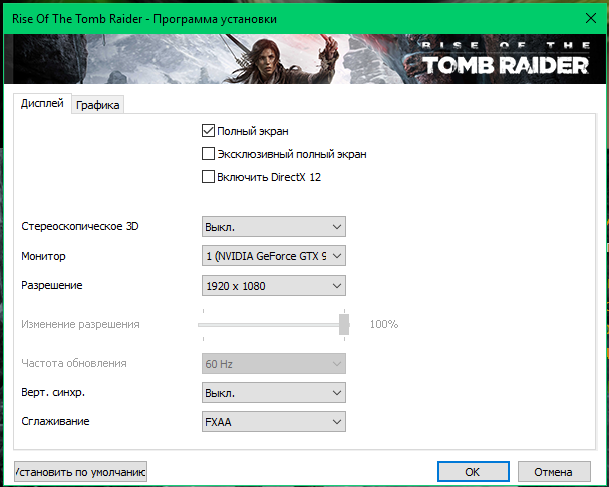Rise of the Tomb Raider: обширные настройки позволяют найти свои, чтоб и картинка была нормальная и число кадров не падала ниже 60кадров.