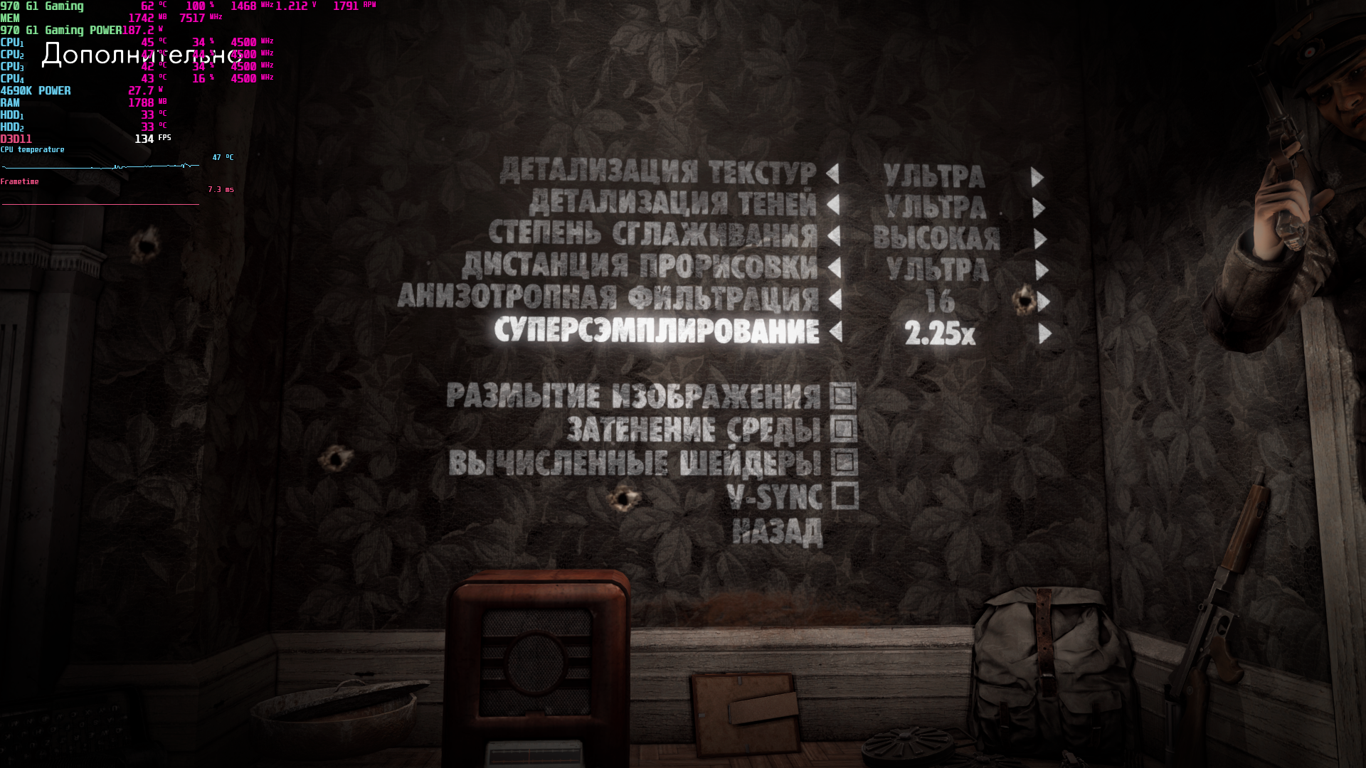 Графика меня устраивает, но на максимальных настройках есть локации, где даже 1070 просаживается до 45-47 кадров.