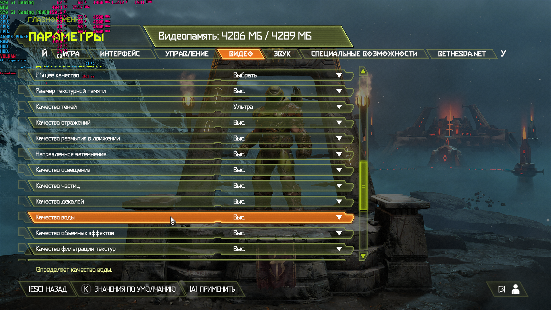 В качестве примера приведу игру DOOM Eternal,которая любит "пожрать" видеопамять.Настройки выставила сама игра.