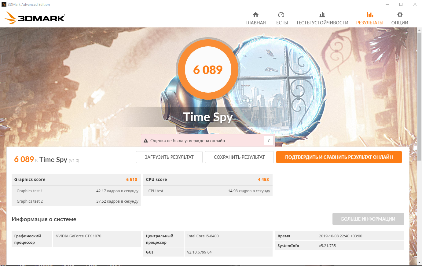 Gears 5: почти еще не проходил игру. Поэтому только результат самого бенчмарка.