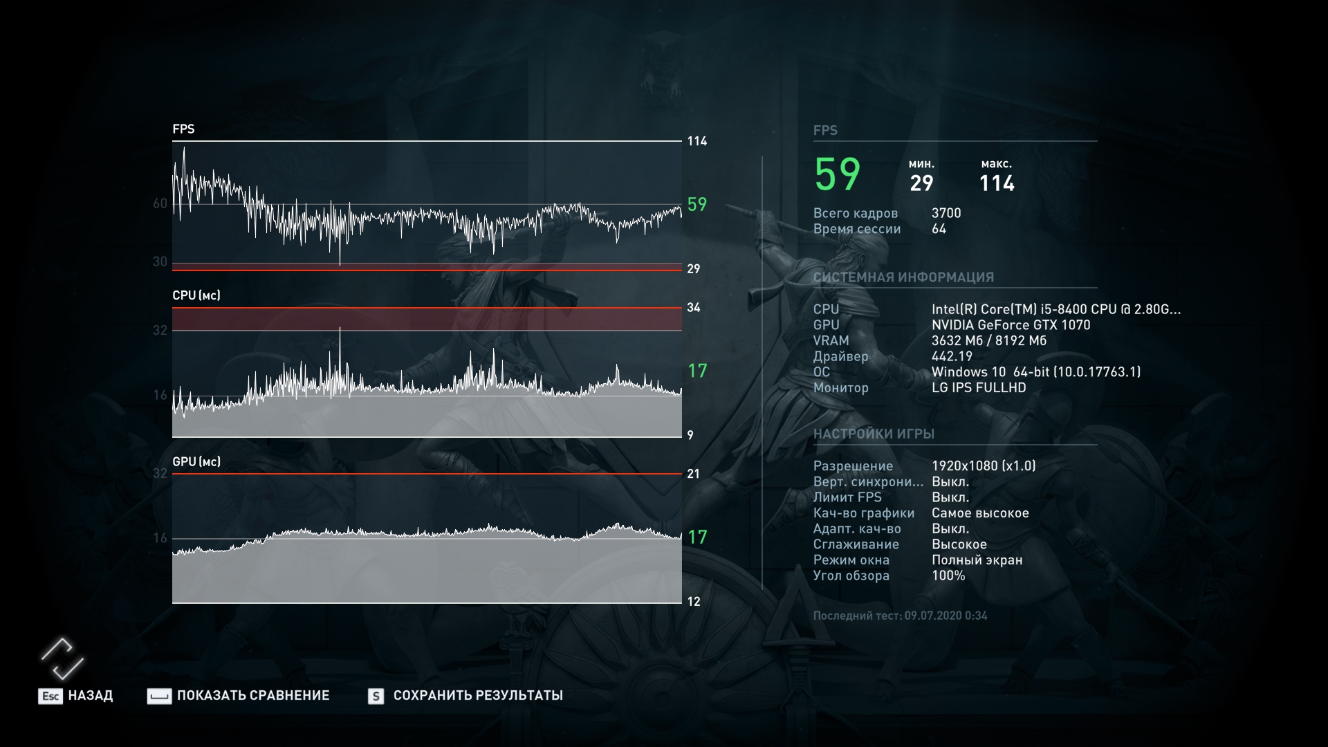 Assassins Creed Origins: представлен только самим бенчмарком. Настройки-самые высокие. Не удивляйтесь фризам - это из-за жесткого диска. При переносе игры на ССД, ситуация немного лучше.
