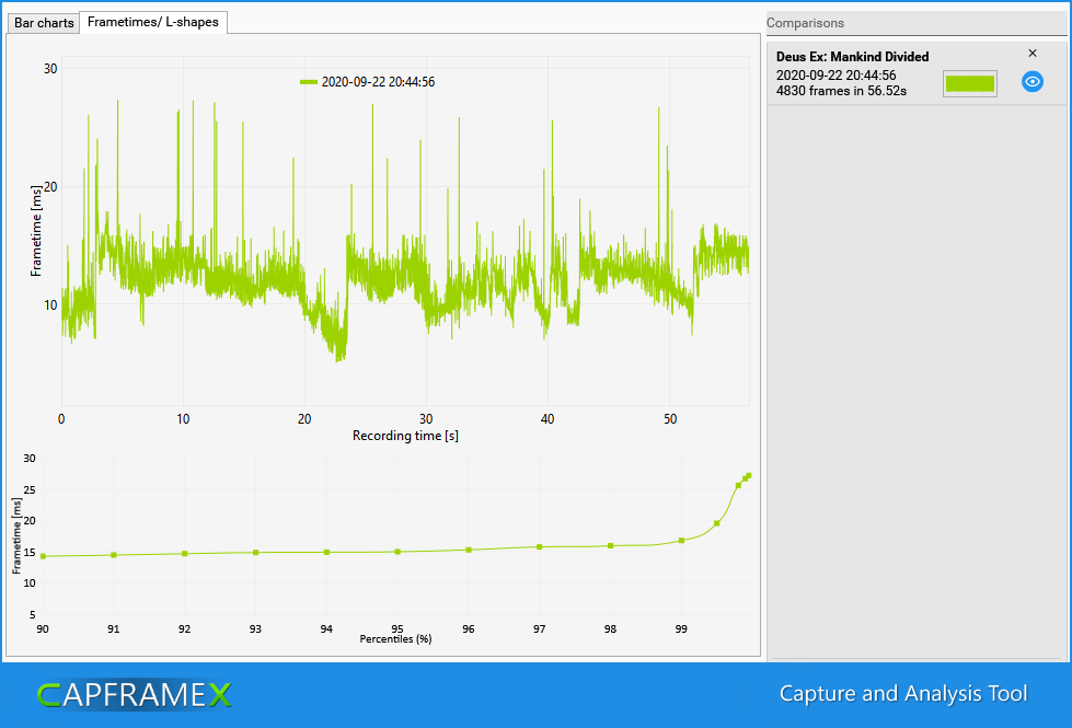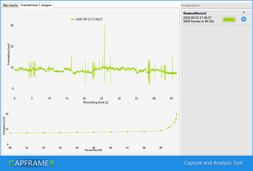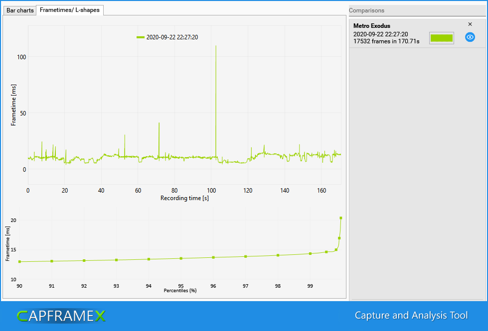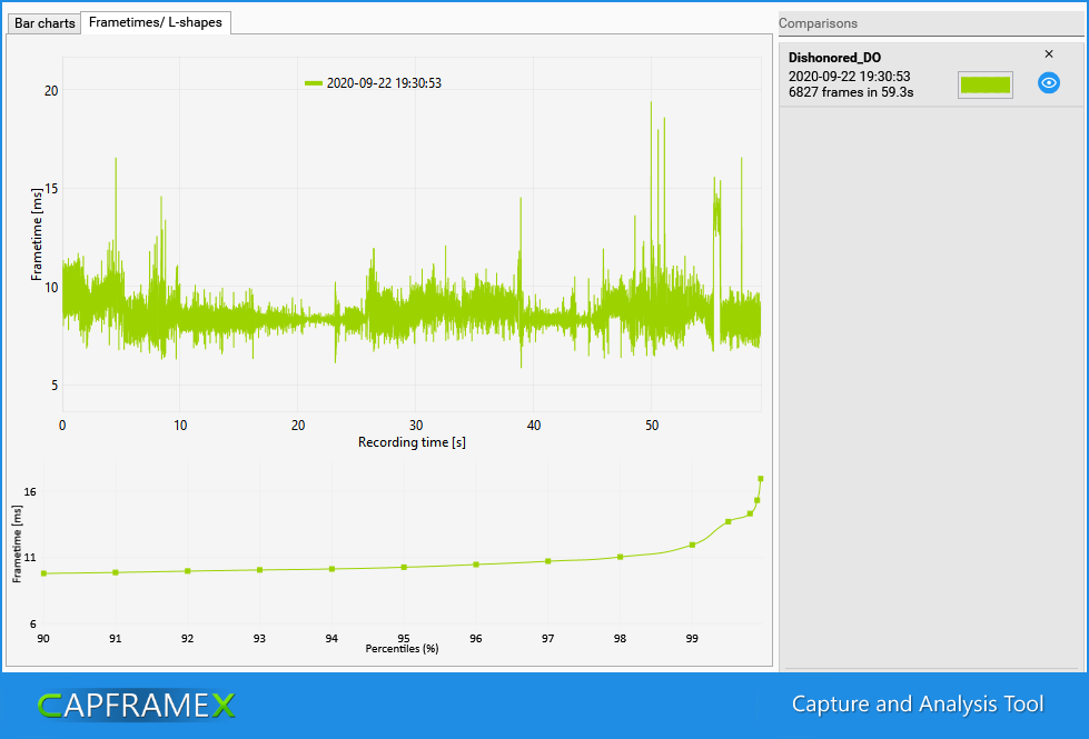 Если в самой игре нет бенчмарка или он не совсем отражает реальную производительность, то буду использовать запись небольшого фрагмента с помощью программы CapFrameX.