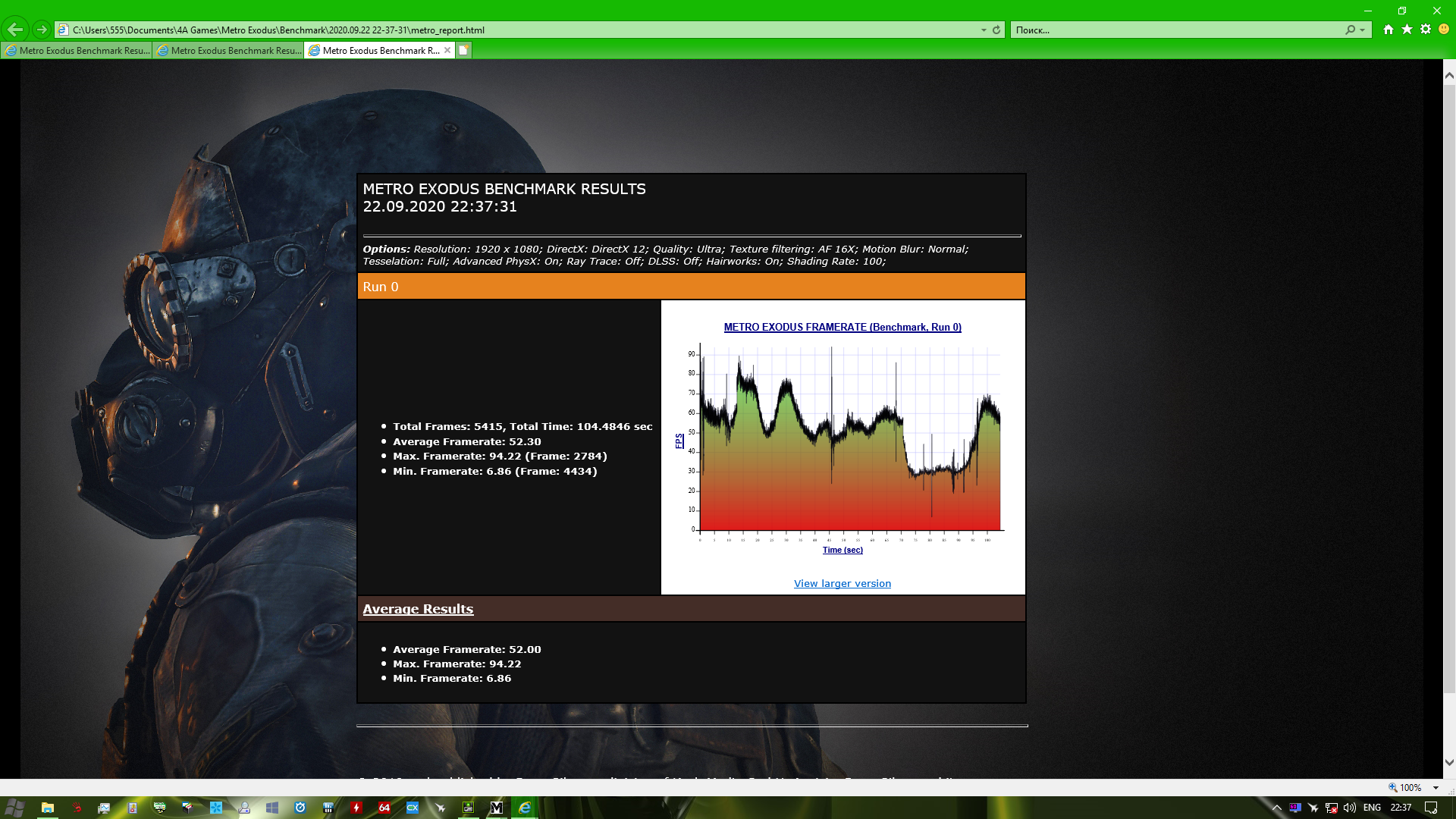 Бенчмарк пройден на максимальных настройках.