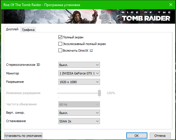 Rise of the Tomb Raider: выбрал такие настройки.