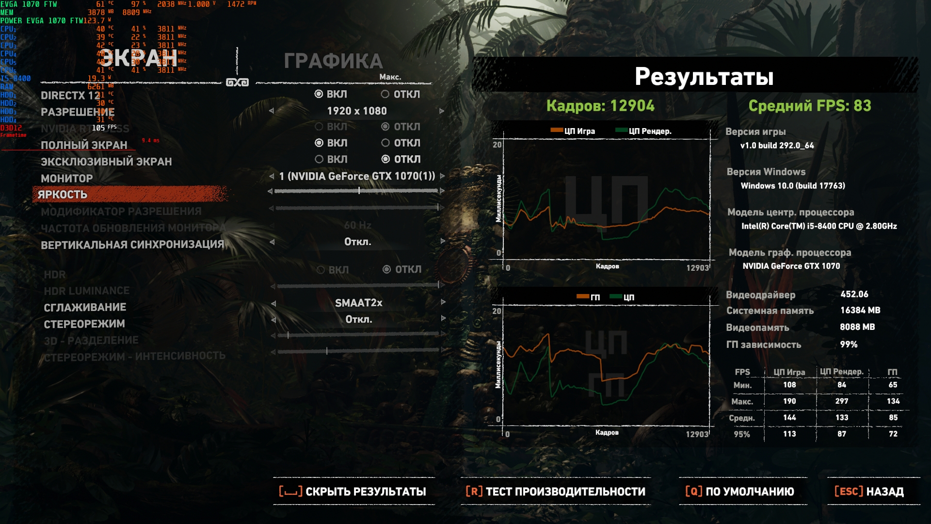 Большое тестирование игр на системе i5-8400 и GTX 1070