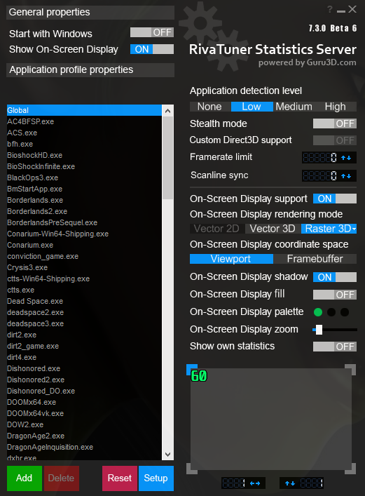 Но и для процессора это оказывает определенный положительный эффект. Почти полностью пропадают фризы и многие игры становятся просто идеально плавными. Но делаю это не с помощью вертикальной синхронизации, а программой Riva Tuner Statistics Server (RTSS), которая обычно устанавливается вместе с MSI Afterburner.