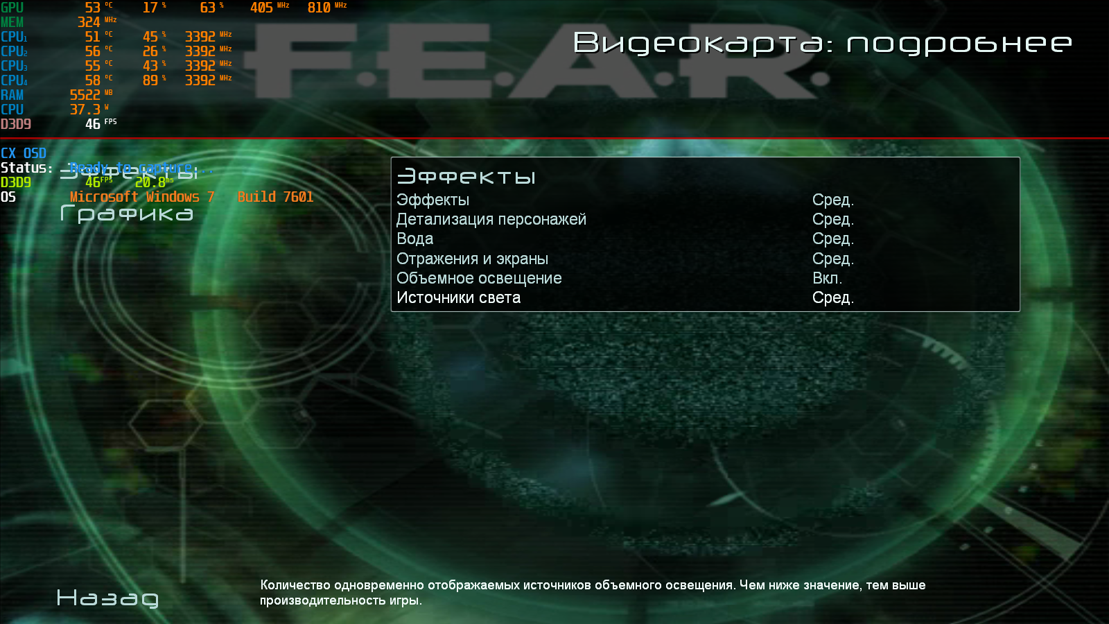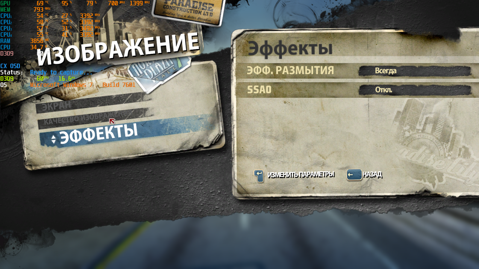40 с копейками фпс, маловато будет. Благо есть куда ползунки крутить.