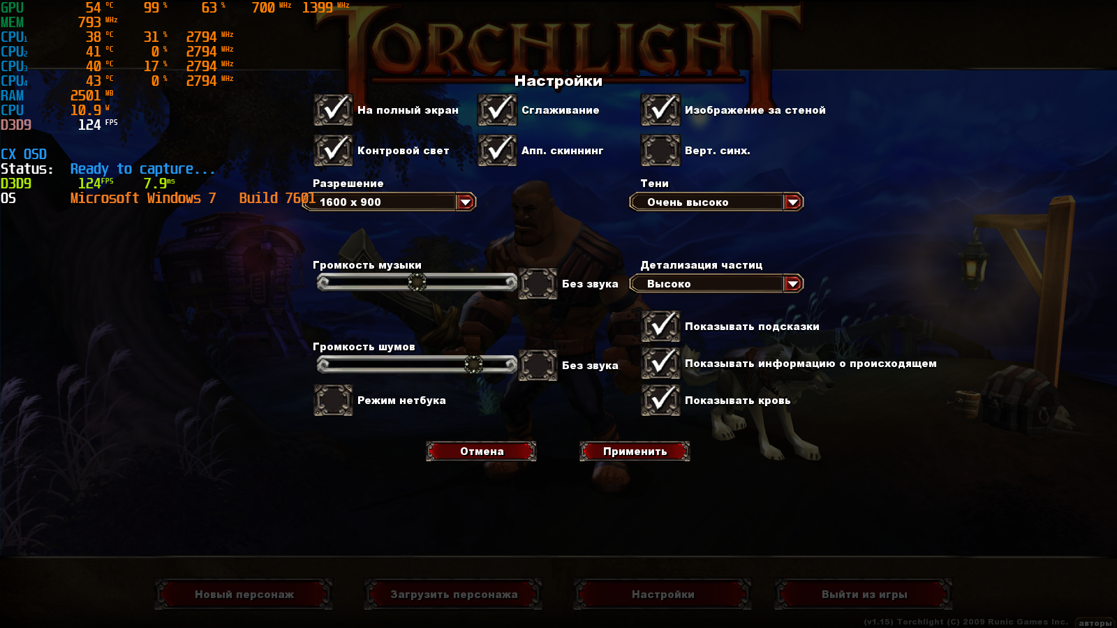 Настройки максимальные. Игра просто "летает" (еще бы видеокарта так не грелась...).